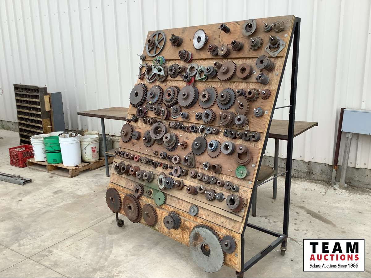 1456 Display Rack Full of Hubs and Sprockets