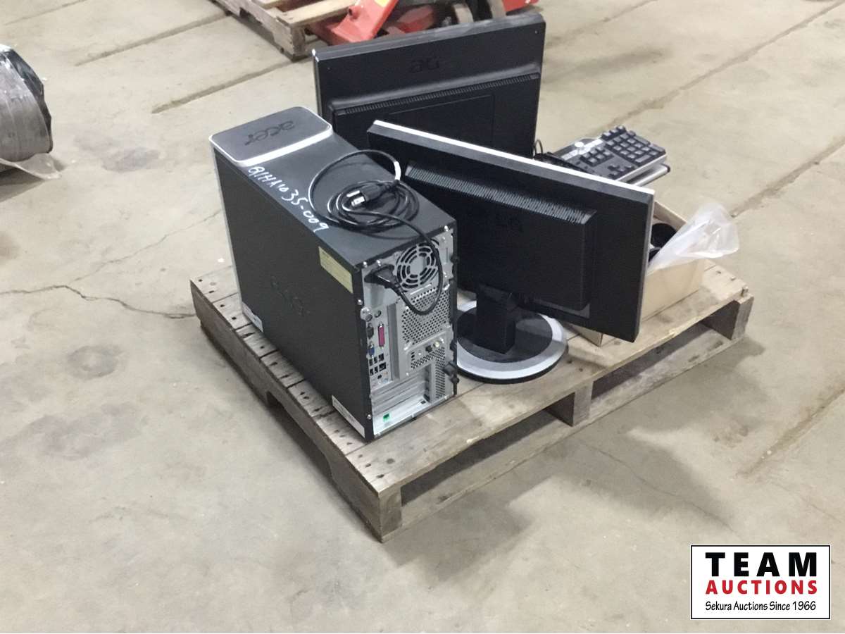 1758 Acer 250GB Tower Computer w/ 2 Monitors 2 Keyboards & External DVD drive