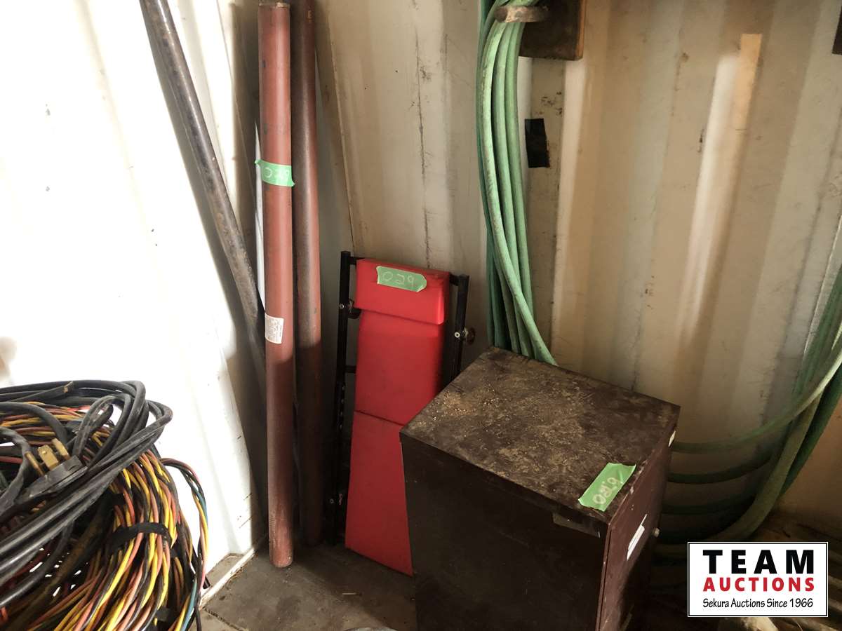 (2) telescopic posts, 2 drawer filing cabinet, garden hose, creeper, 10 ft of 1/2 inch gas line