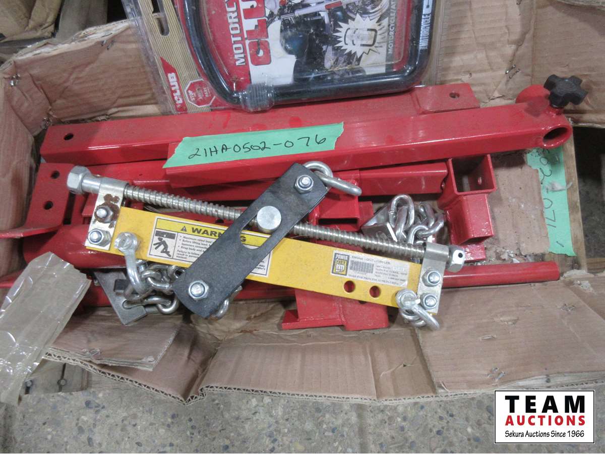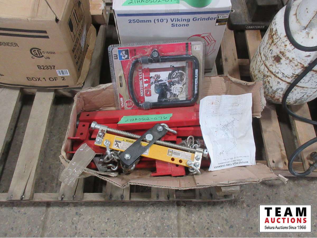 1712 Motorcycle Tire Changer, Two Motorcycle Wheel Club & Engine Hoist Leveler (Unused)