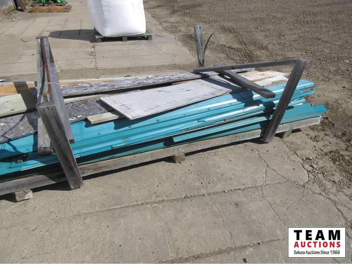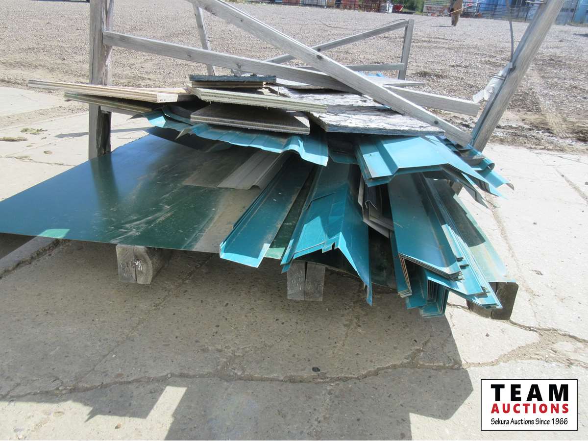flashing, ridge cap, v rib, assorted small pieces of plywood