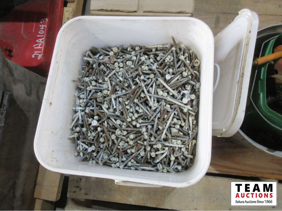 Screws, nails, urinal blocks, (4) pails of adhesive, Case of potable water additive