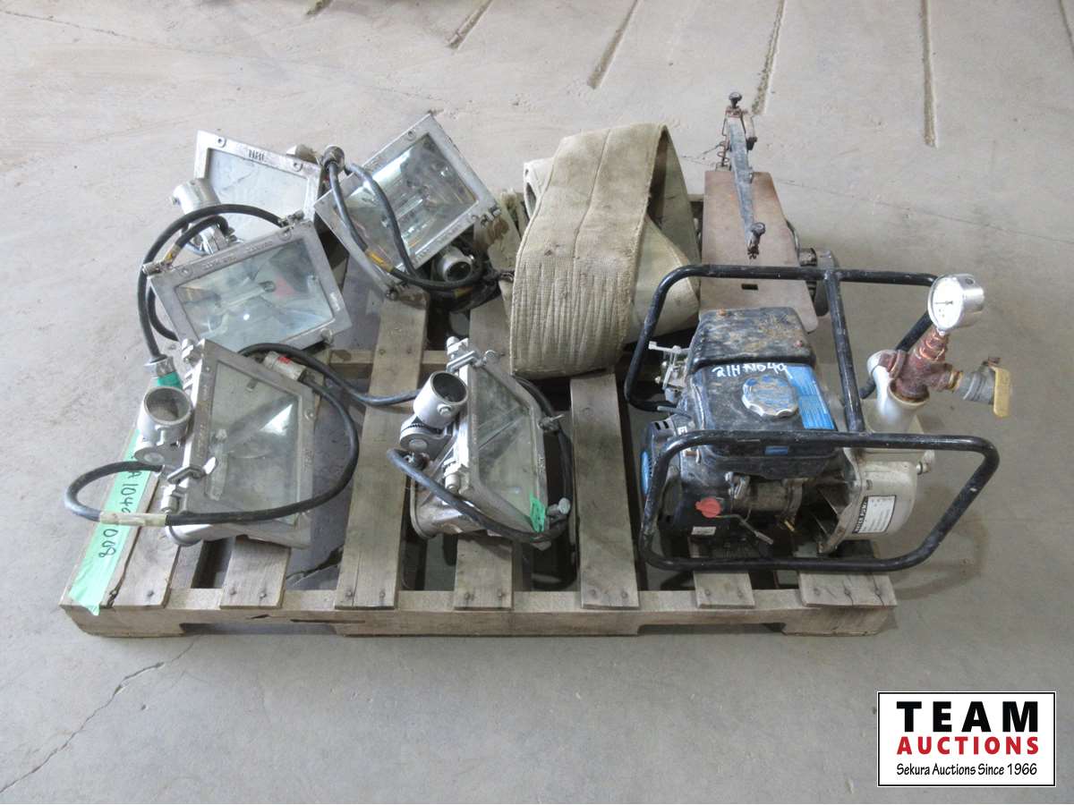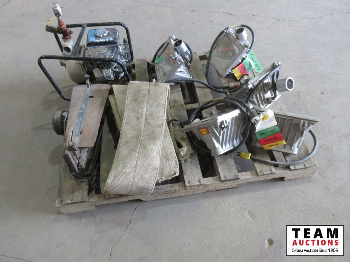 (5) chain link fence lights, Powerfist water pump, heavy sling, scroll saw