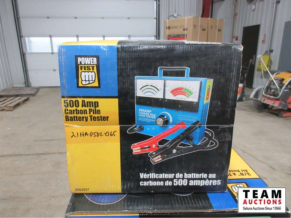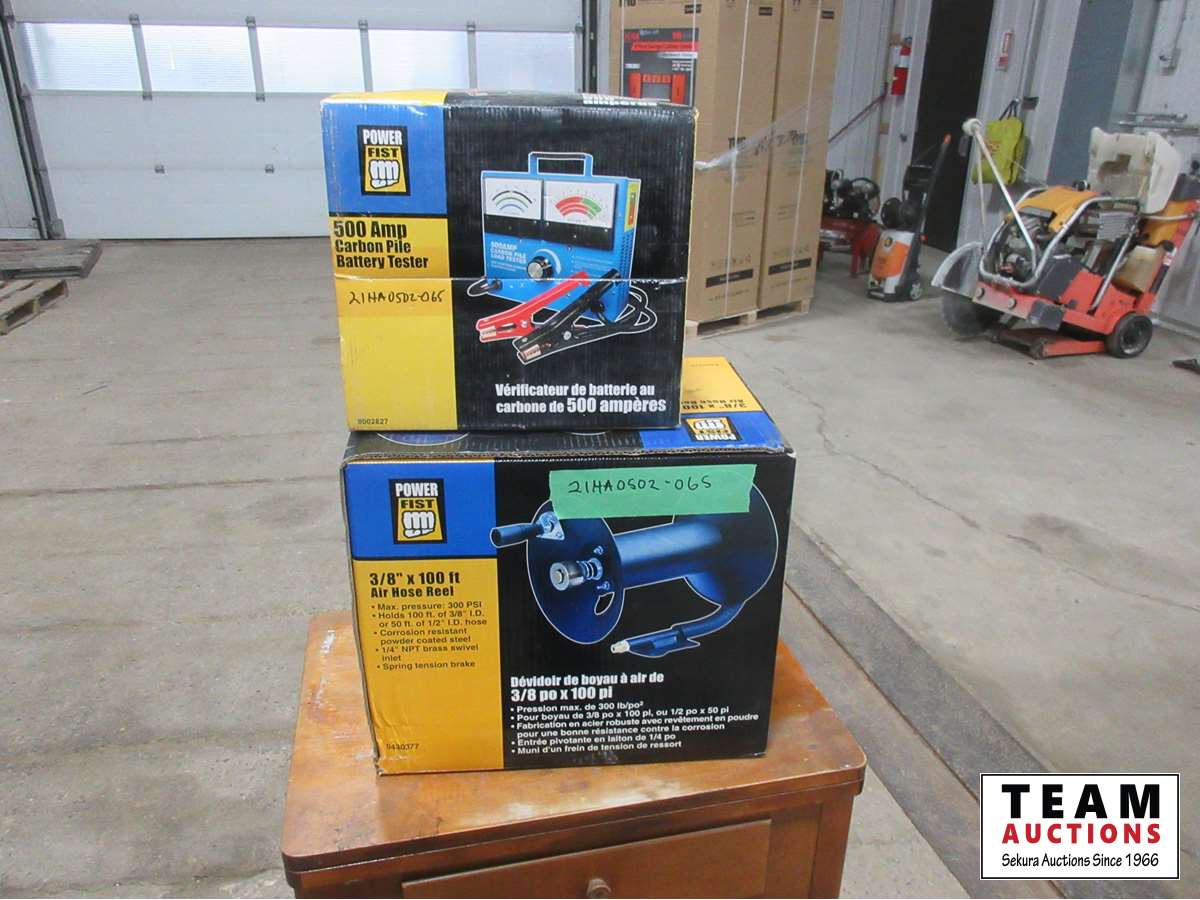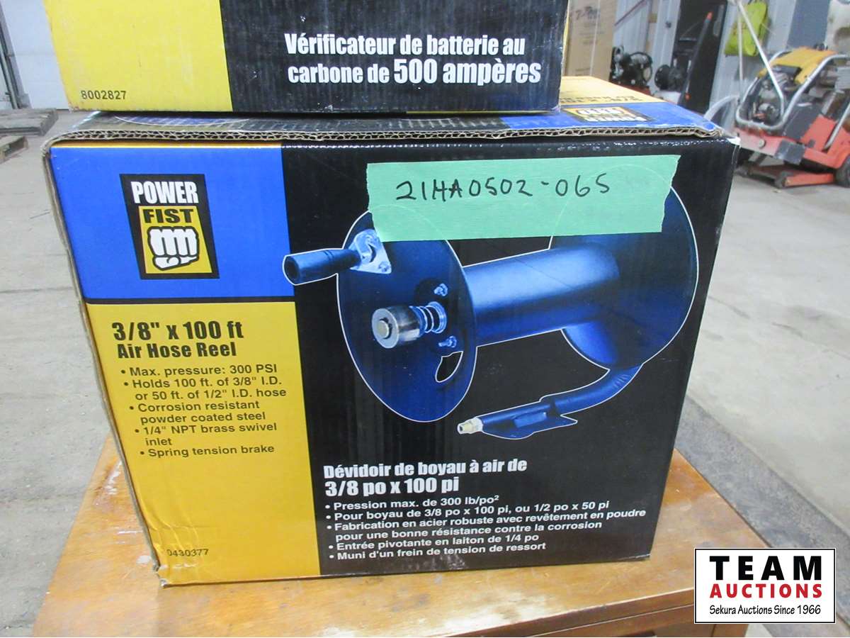 1648 Powerfist Carbon Pile Battery Tester & Powerfist 10 Ft Air Hose Reel (Unused)