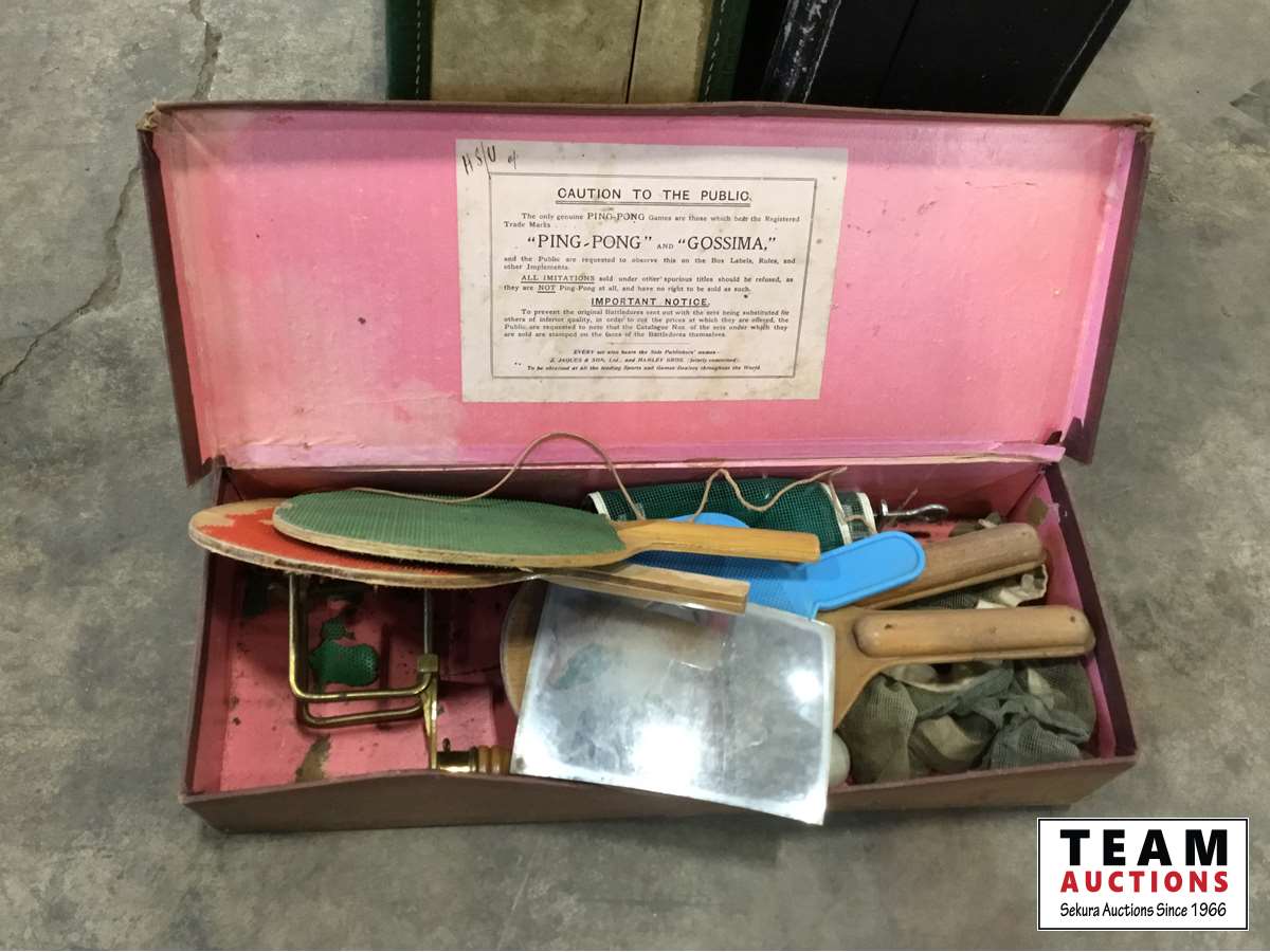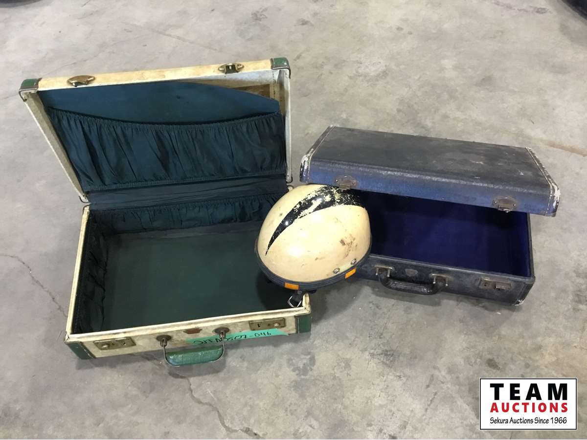 1604 (2) Antique Luggage Cases, Vintage Ping Pong Set, Vintage Vespa Helmet
