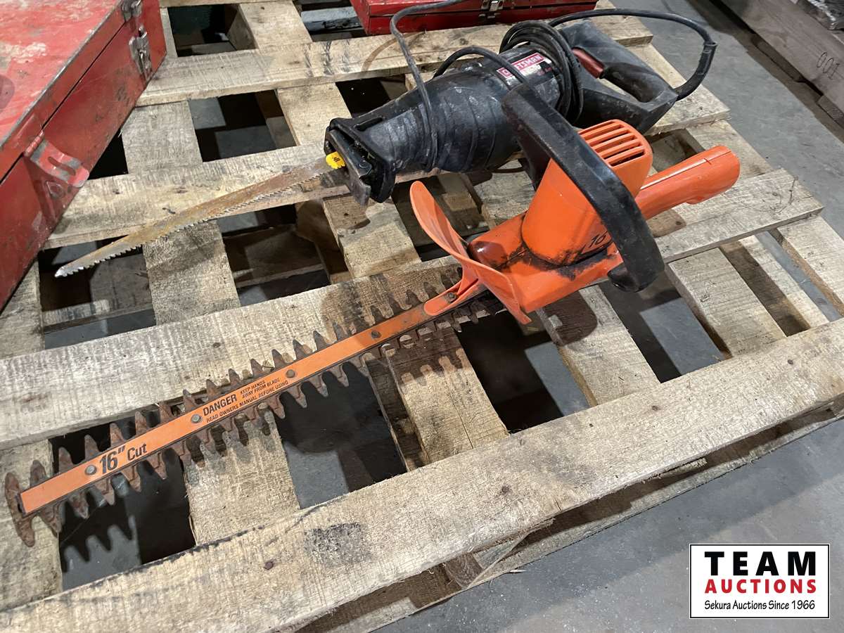 1341 (2) Tool Boxes with Assorted Tools, Sawzall, and Hedge Trimmer