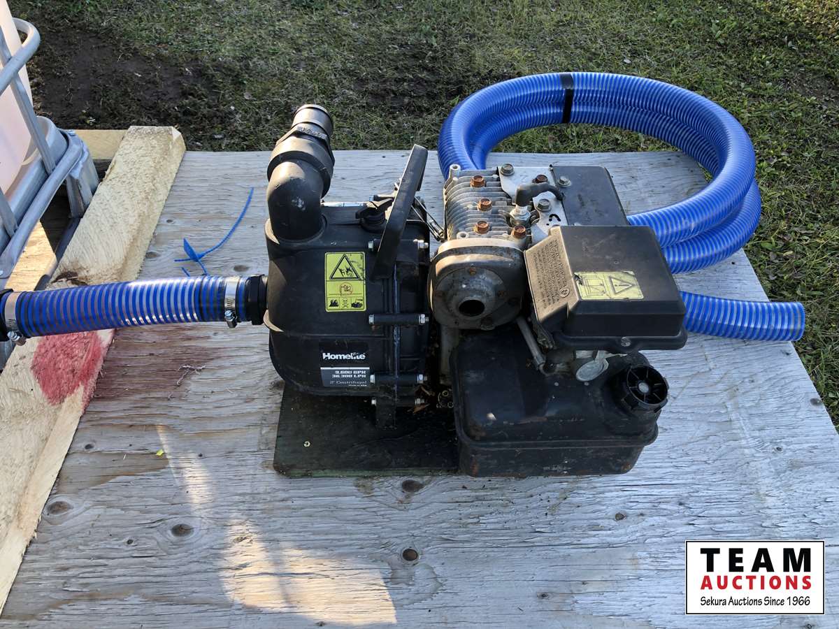 Homelite 9600 GPH 2 inch pump, Briggs & Stratton engine, 1000 L tote, c/w hose