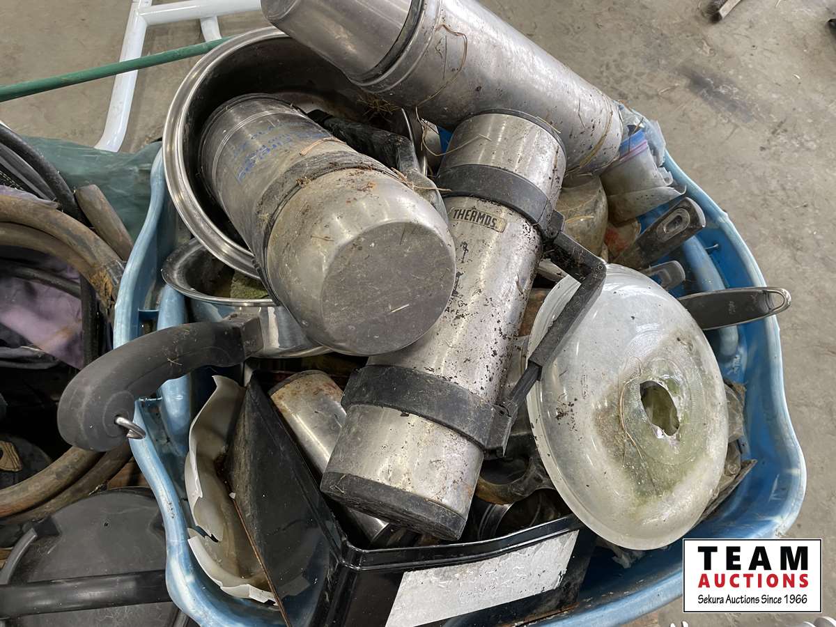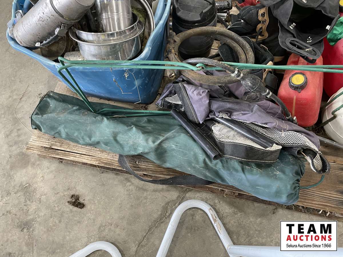 Camping items, jerry cans, table stand needs bolts