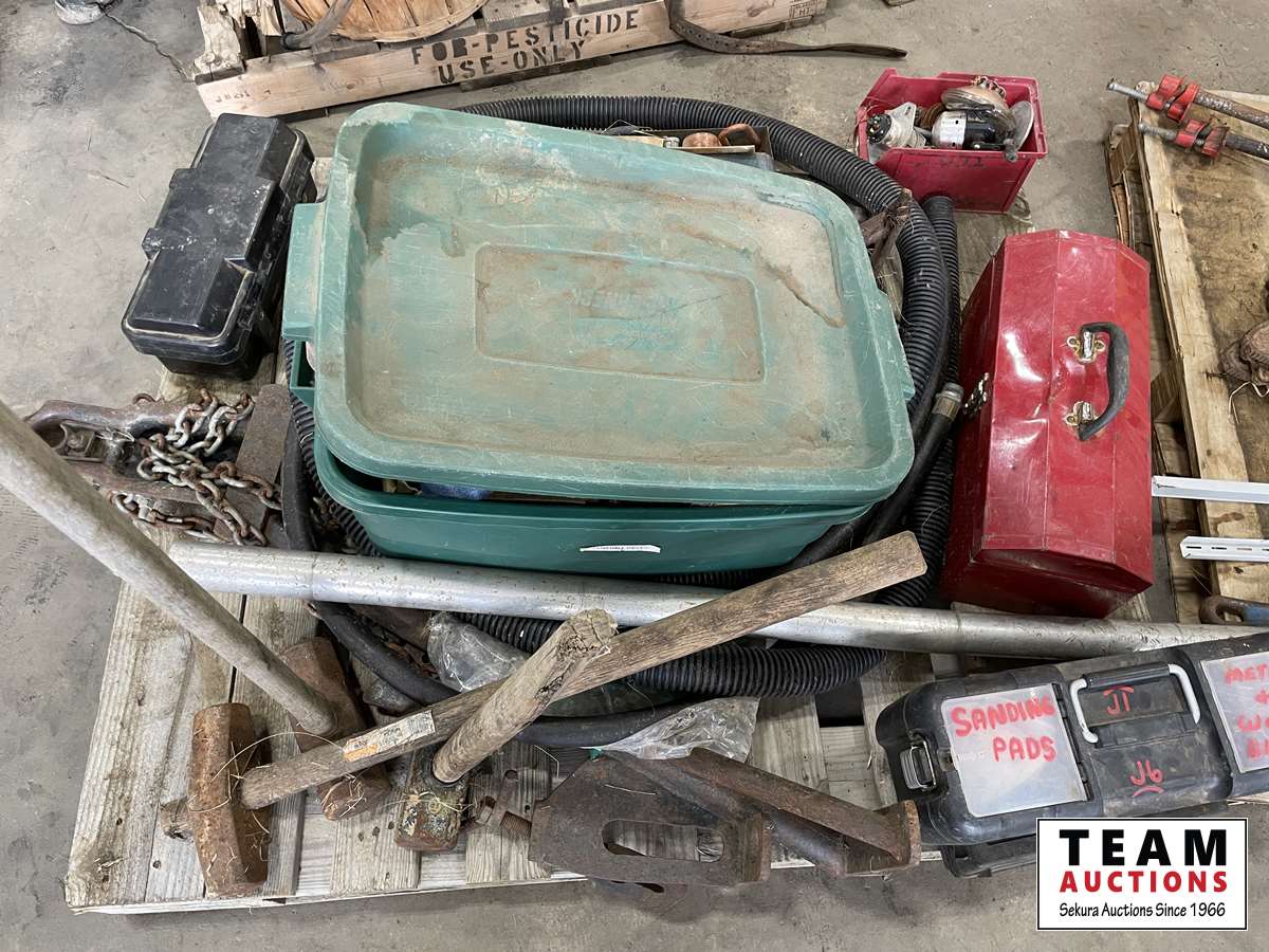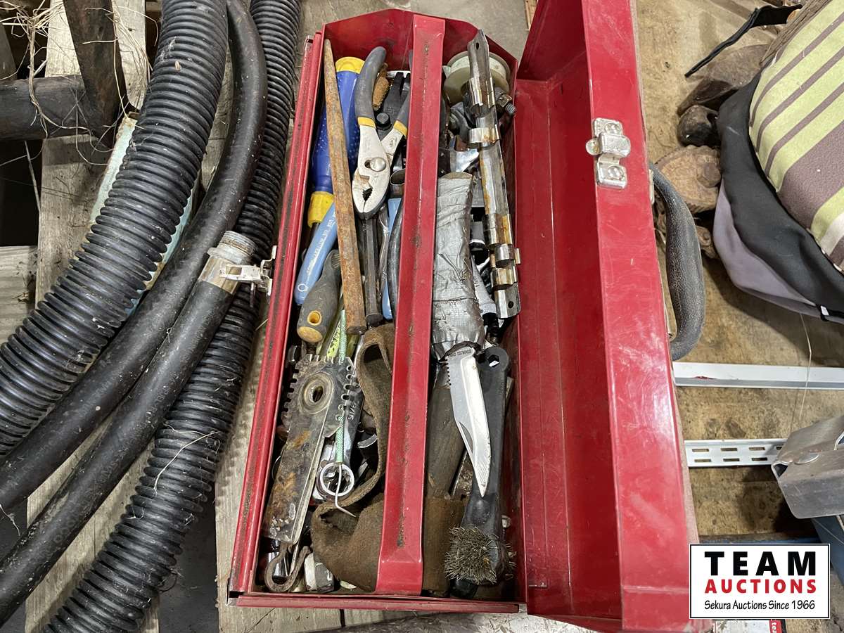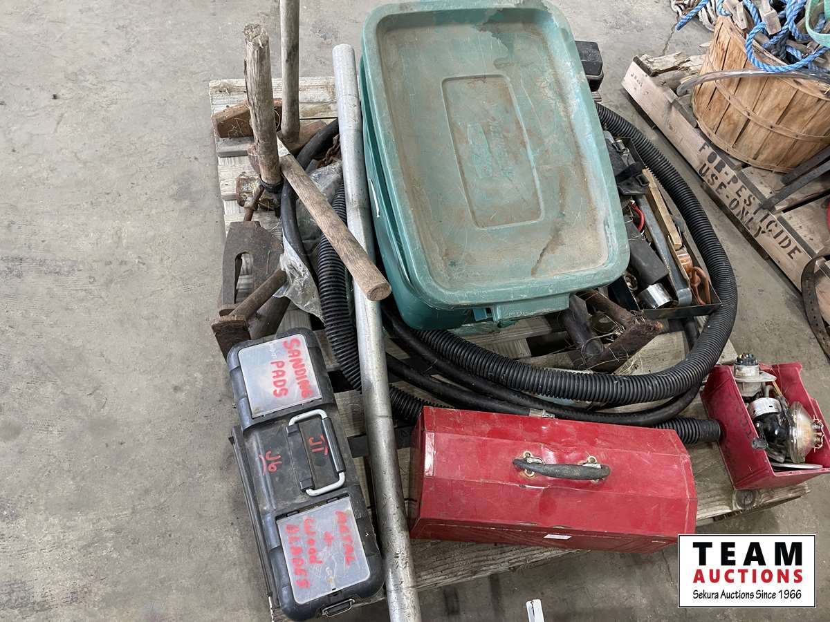 Shop tools, tool boxes, hoses, coverall pieces
