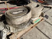 (4) load binders, (4) slings, small shovel, (3) truck chain plies, bolt cutter