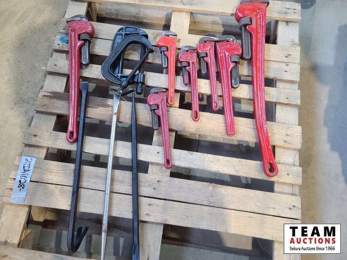 1414 Qty of Pipe Wrenches, C-Clamps and Pry Bars
