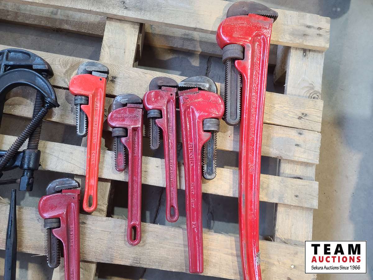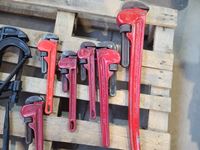 36 inch, 24 inch, 14 inch pipe wrenches, 6 inch clamps