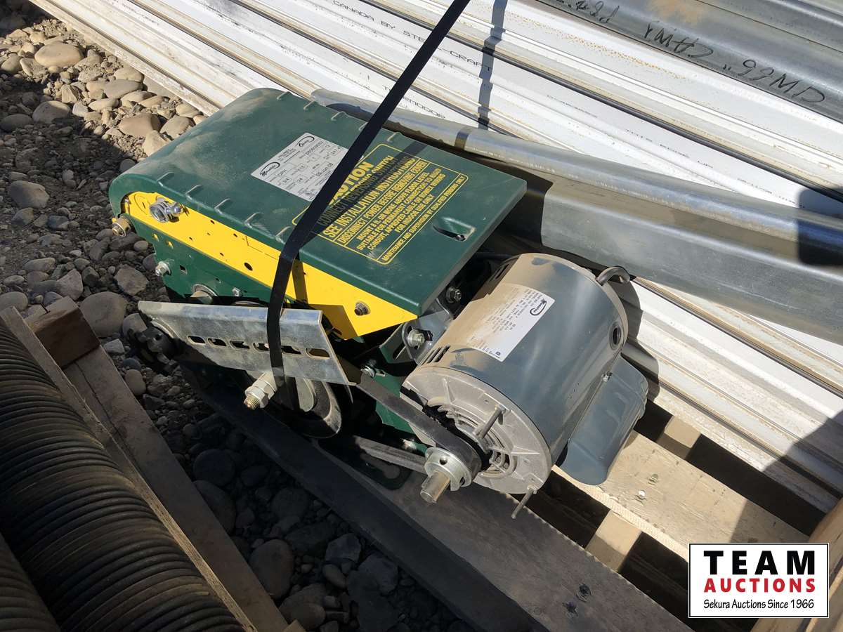 (8) panels, (3) springs, (1) motor 3/4 HP single phase 12 amp 60 hz 115V, box of hardware, rail system