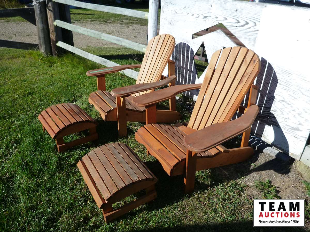1922 (2) Wood Lawn Chairs with Foot Stools