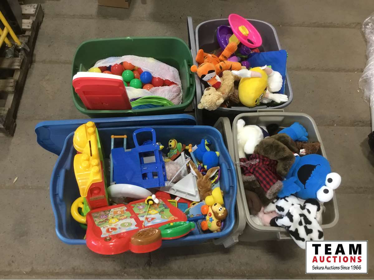 1804 (4) Totes of Kids Toys and Stuffed Animals