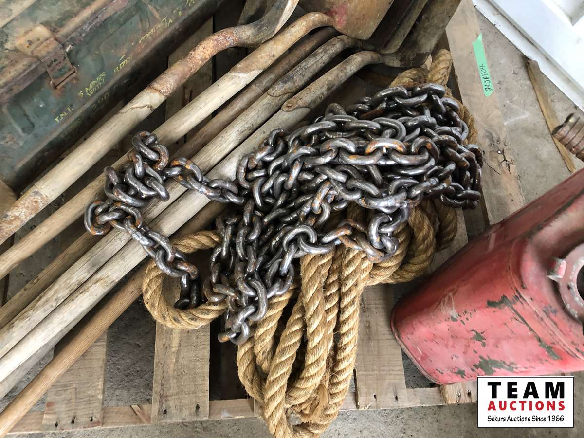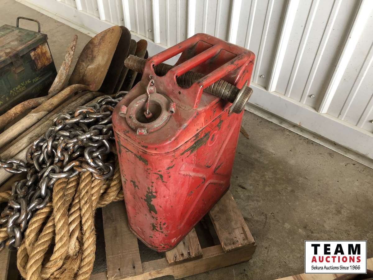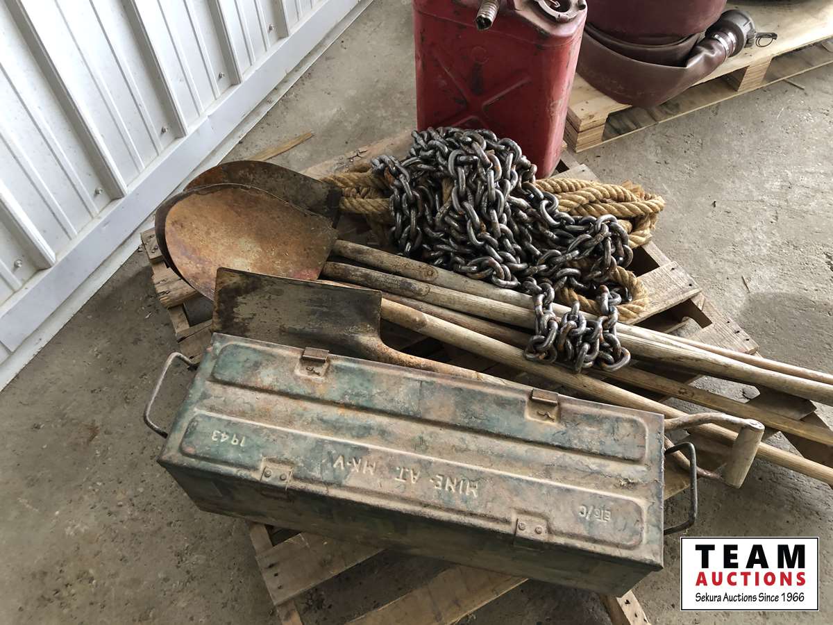 1842 (6) Shoves, Chain, Rope, Metal Gas Can, Ammo Box