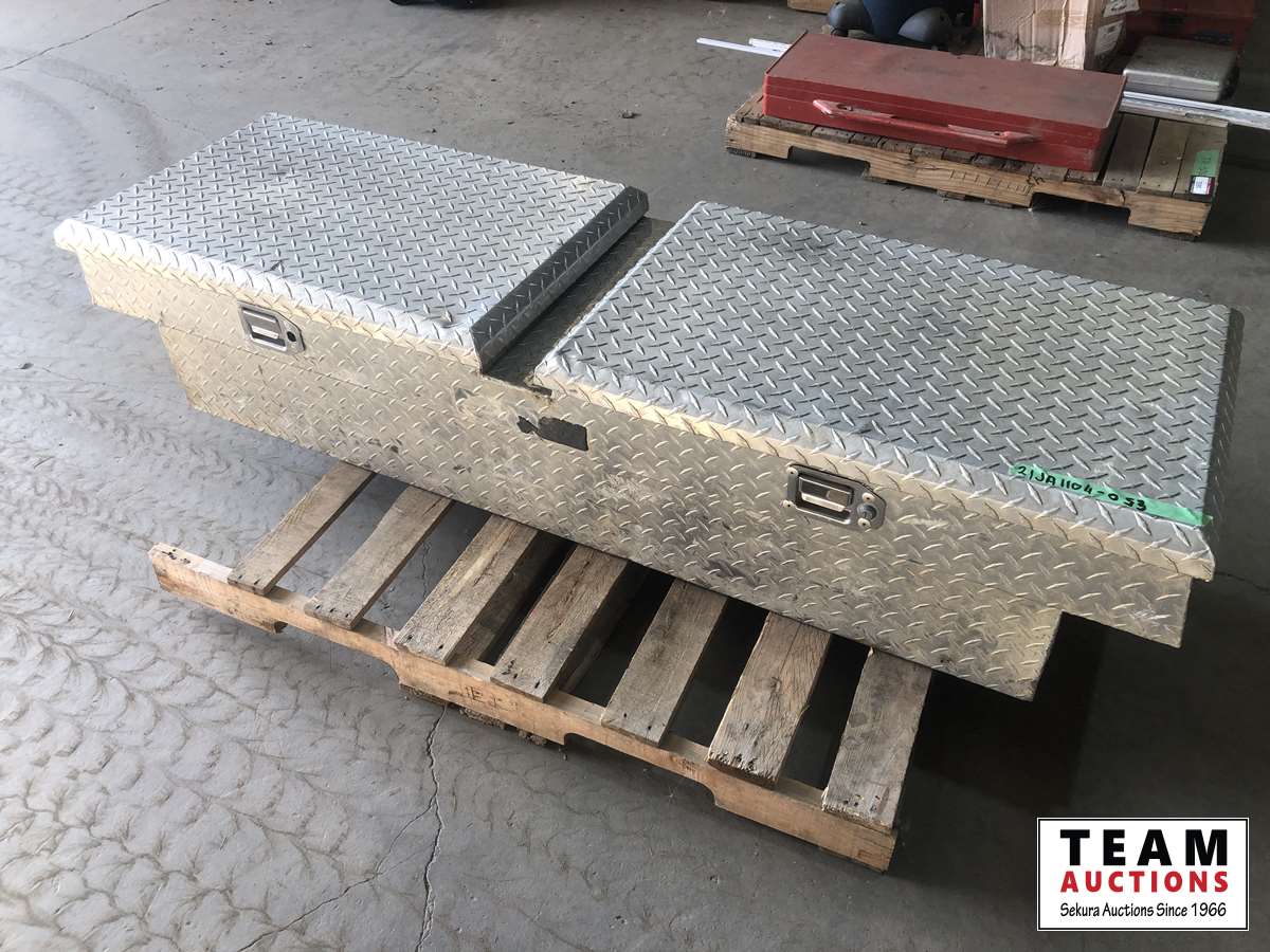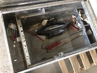 1381 Aluminum Tool Box with Tool and Miscellaneous Truck Items