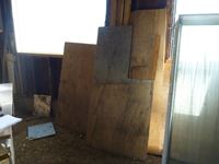 (2) 1/4 inch X 80 inch plywood, (1) 1/2 inch X 96 inch plywood, (1) 3/4 inch X 81 inch plywood, various smaller pieces, and (5) cedar wood 1 X 4 boards