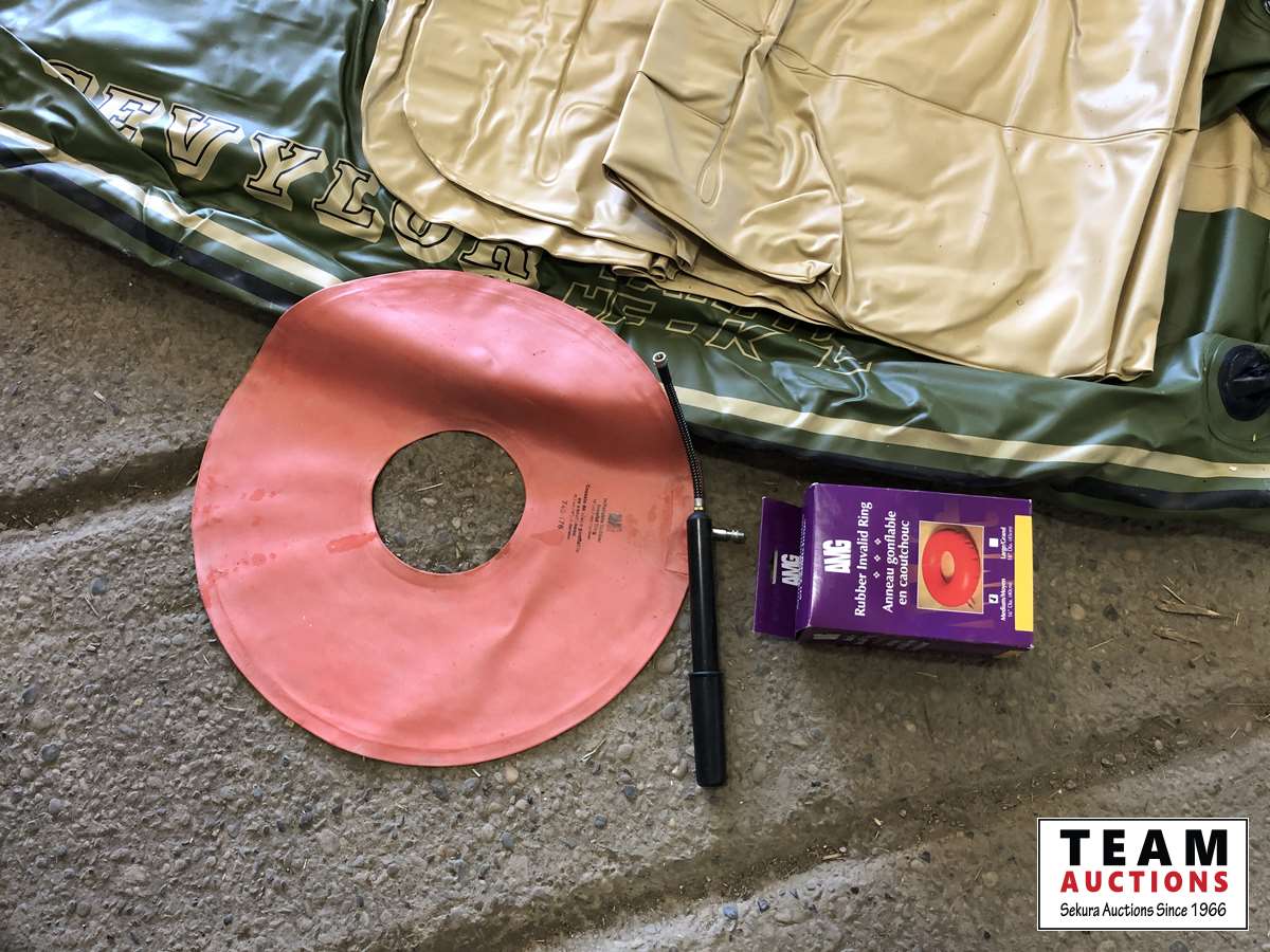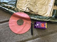 Inflatable kayak, tractor tire tube, hand pump, etc.