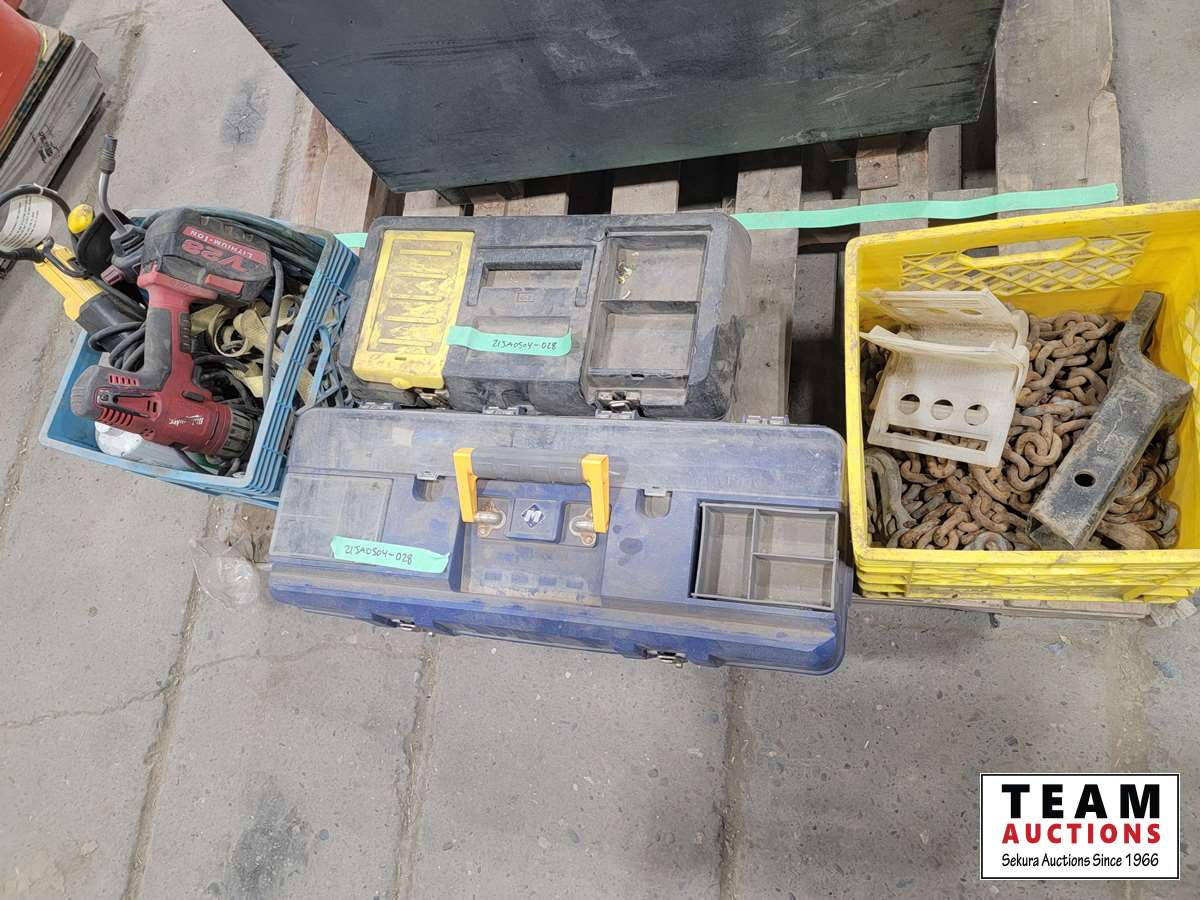 Tool boxes, electrical connectors, tiger torch, chains, etc.