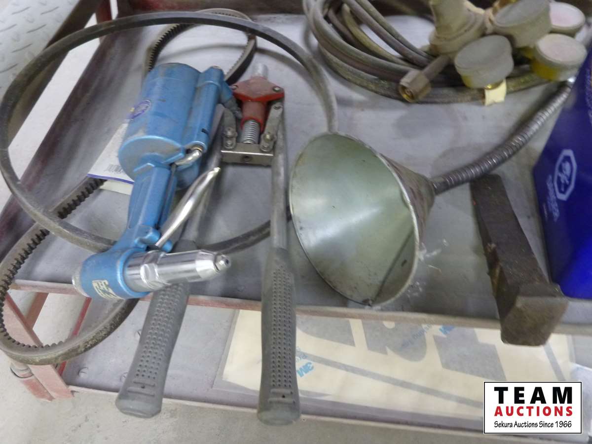 Air & manual pop riveters, drill, heat gun, small cutting torch, miscellaneous shop items