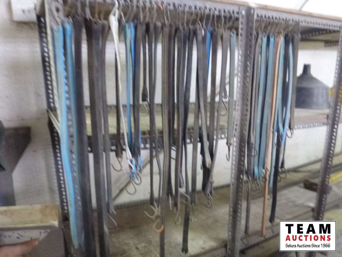 Trap straps, pail of hooks, funnels, swivel hook, clamp, crow bar, hammer, miscellaneous