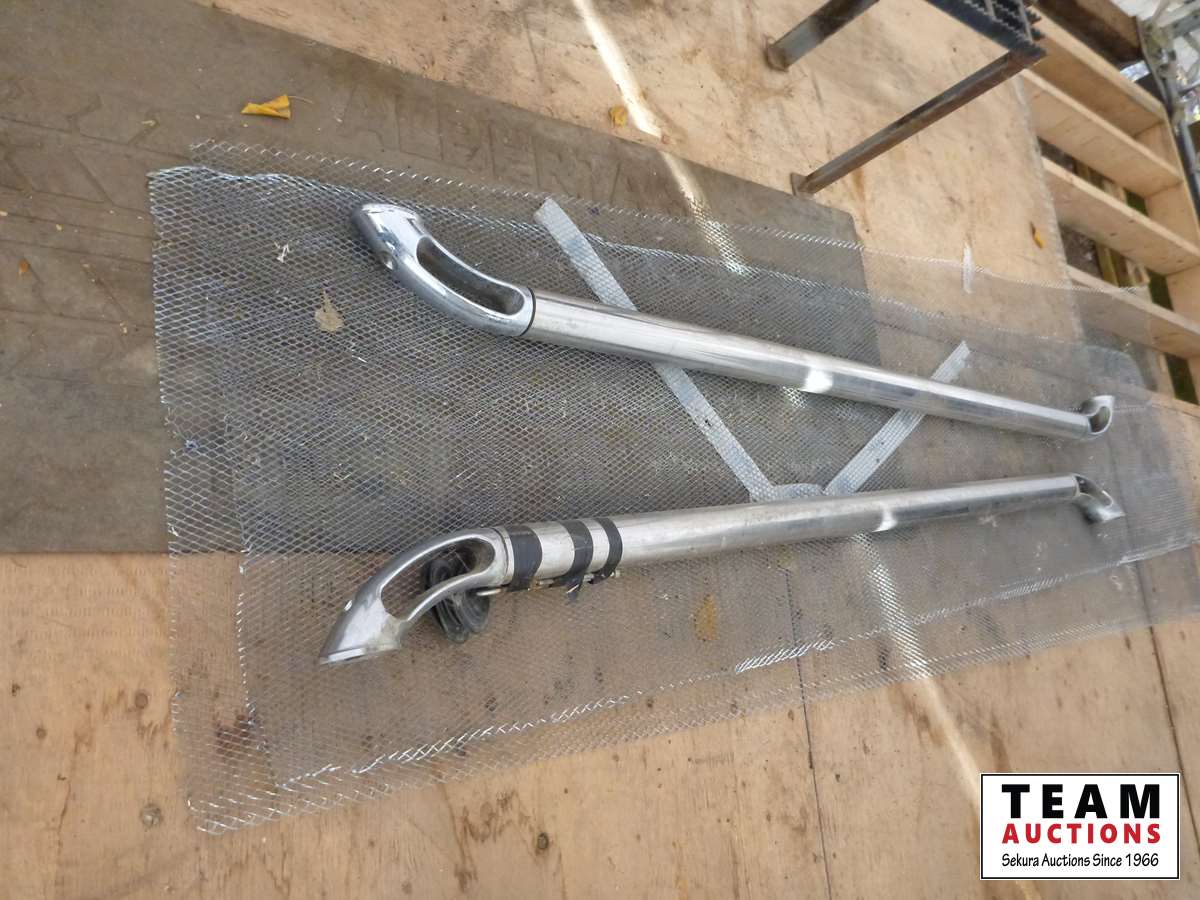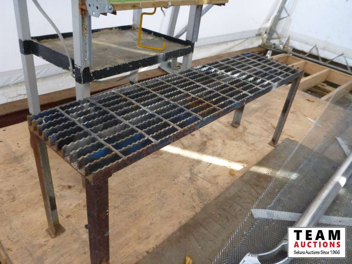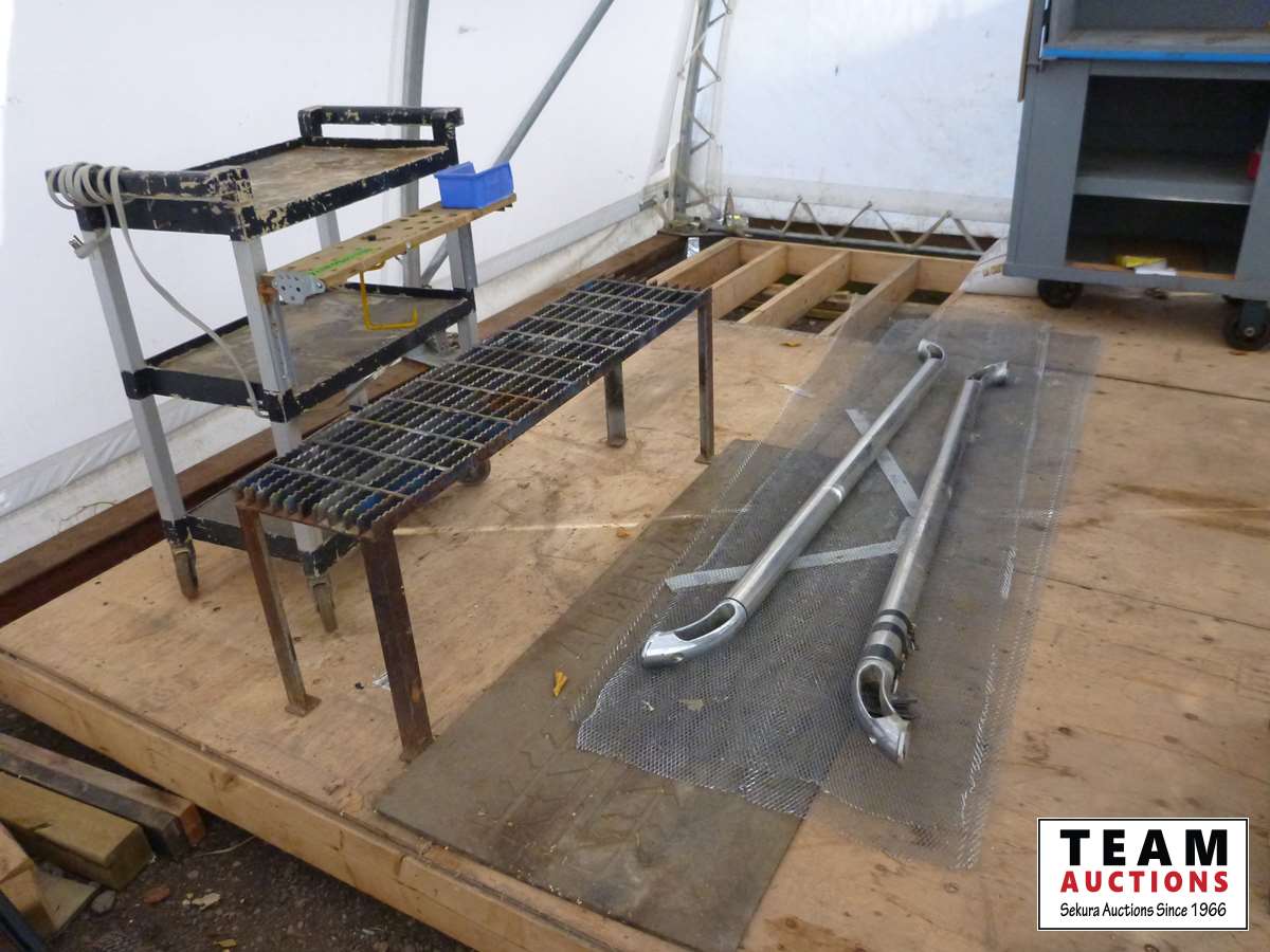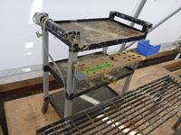 Rubber mat, (2) chrome box rails, (2) masonry mesh, shop cart & metal stand