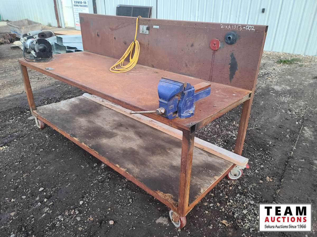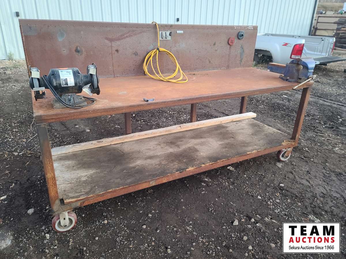 1505 Rolling Shop Table w/ Vise & Bench Grinder