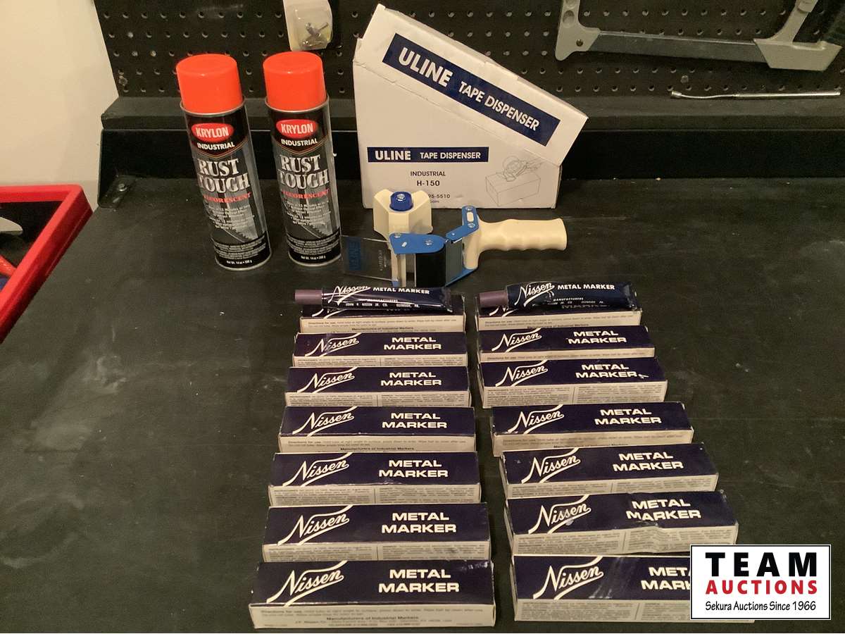 1517 (14) Metal Markers, (2) New Cans of Fluorescent Paint & New Tape Dispenser (Unused)