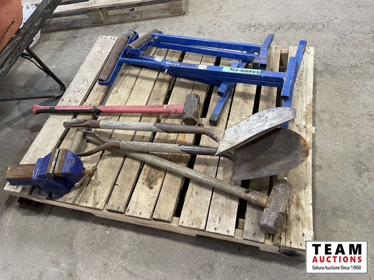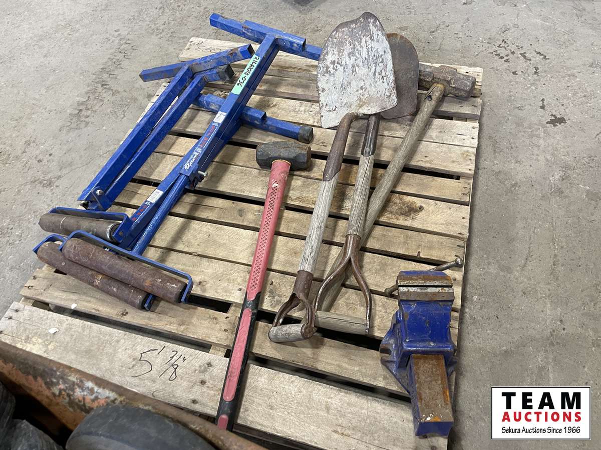 1249 (3) Roller Stand, Shoves, Sledge Hammers, Vice