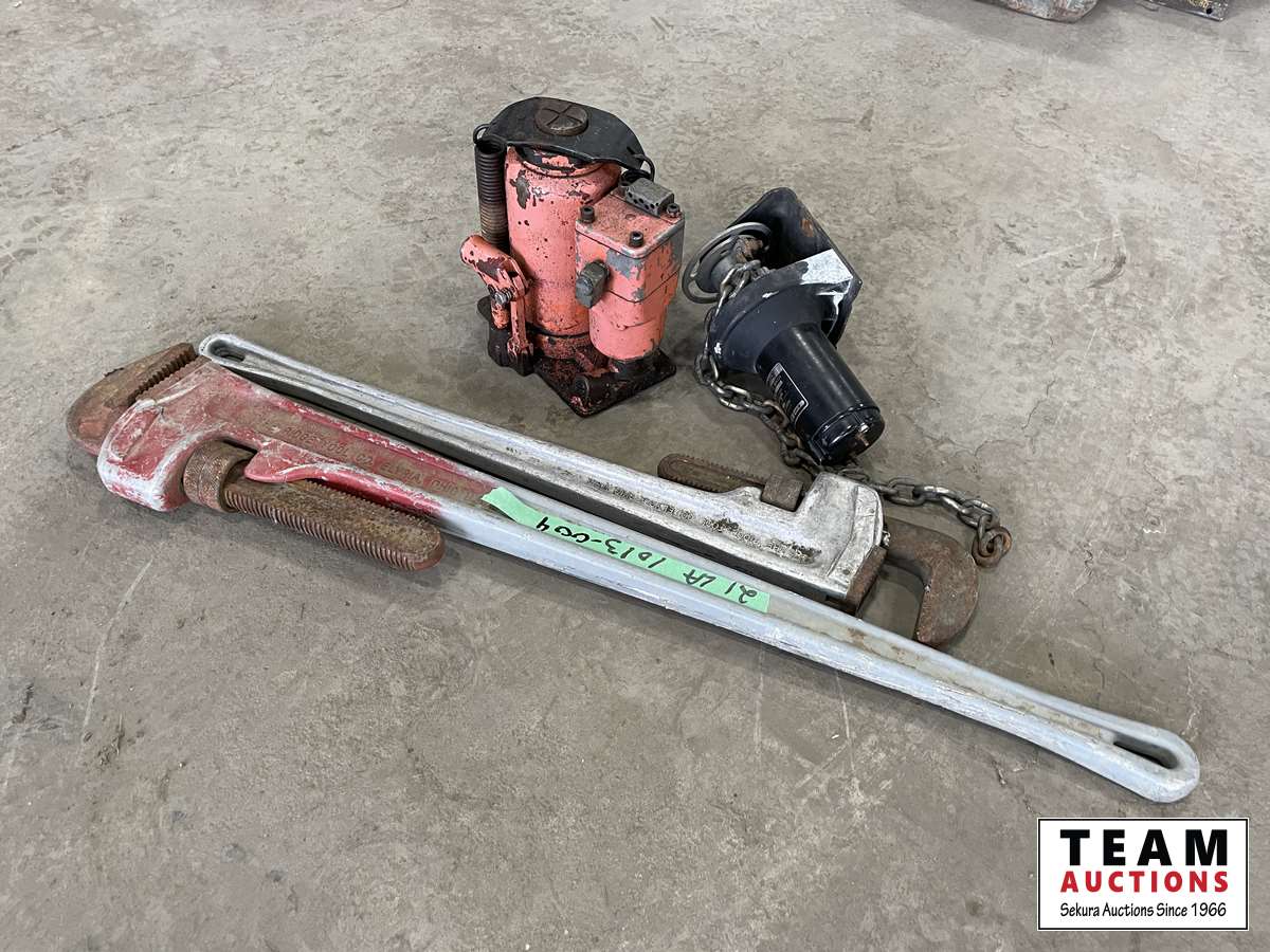 1678 36 Inch & 24 Inch Aluminum Pipe Wrench, Bottle Jack & Super Wrench