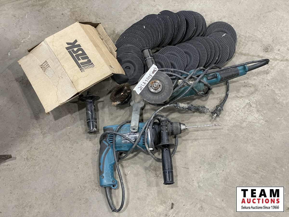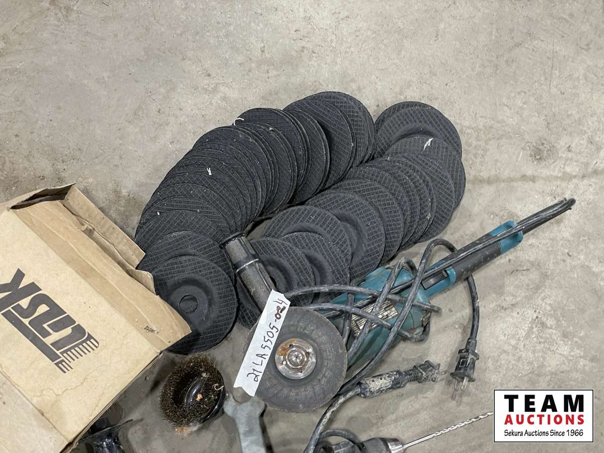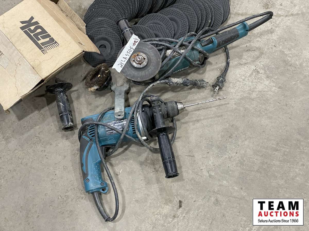 1028 Makita Grinder, Makita Drill & Qty of Discs