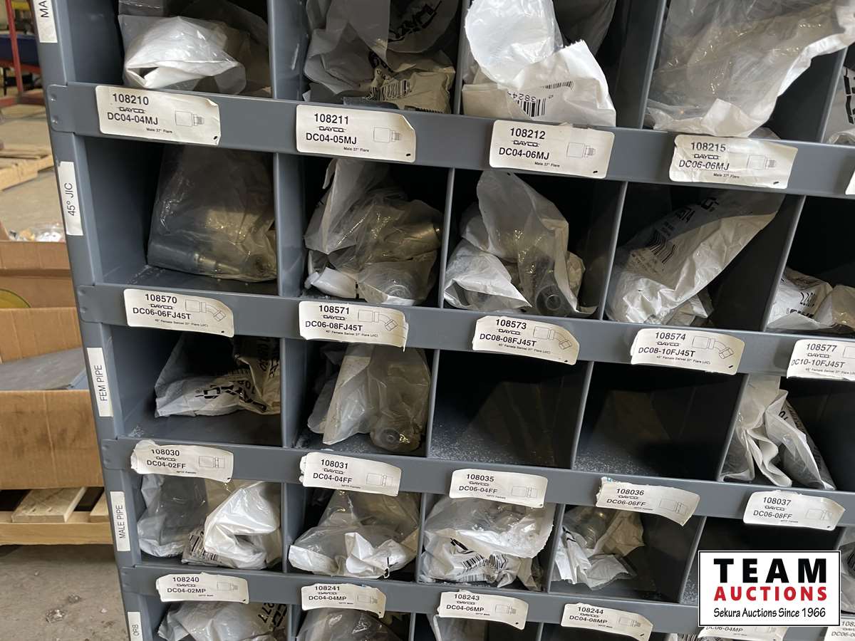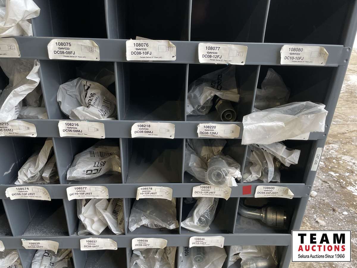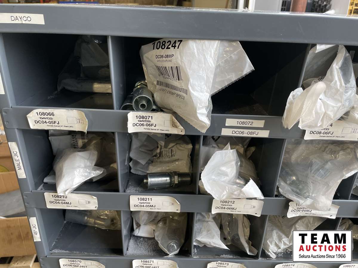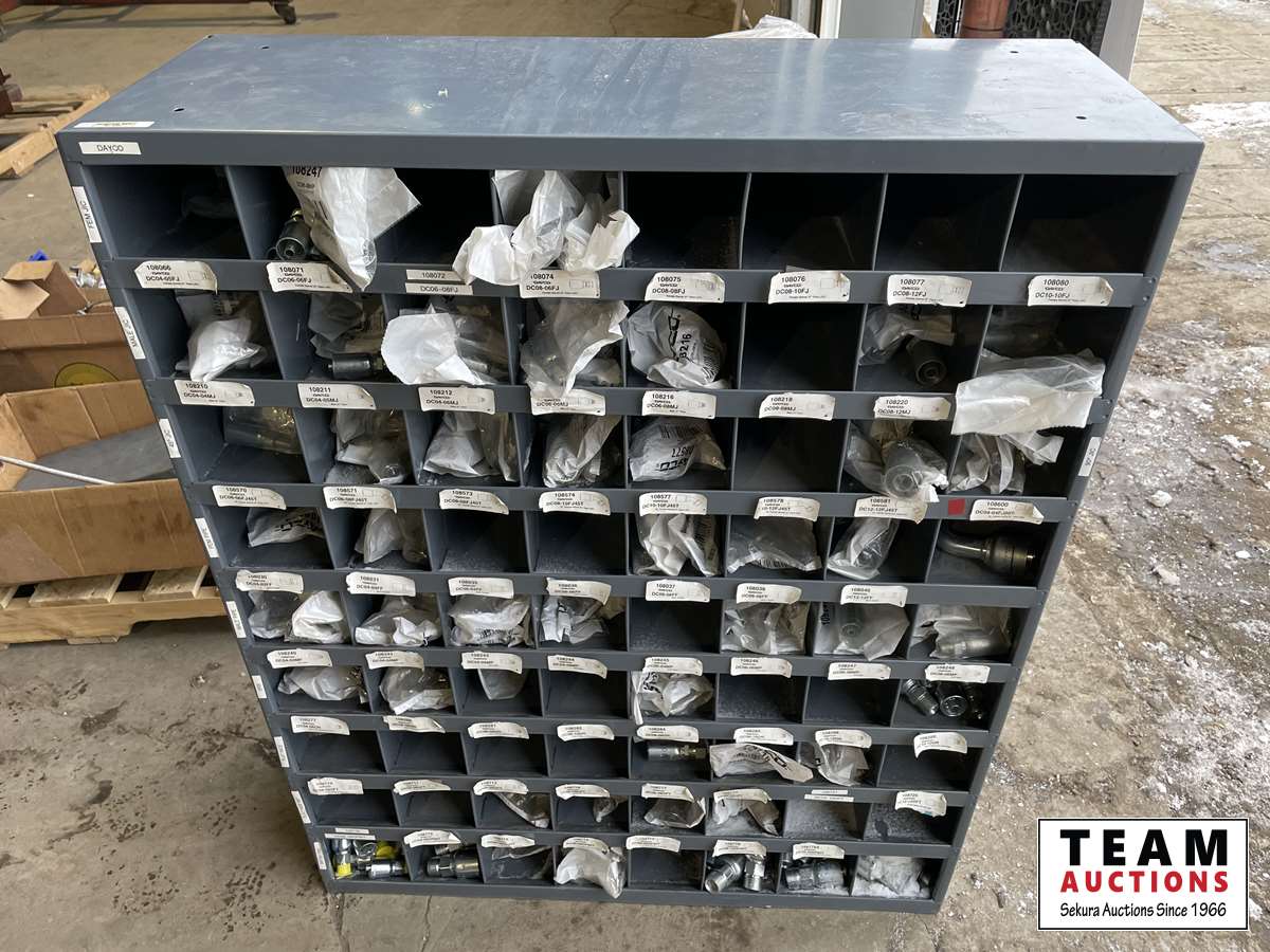 1649 Metal Bin of Hydraulic Fittings