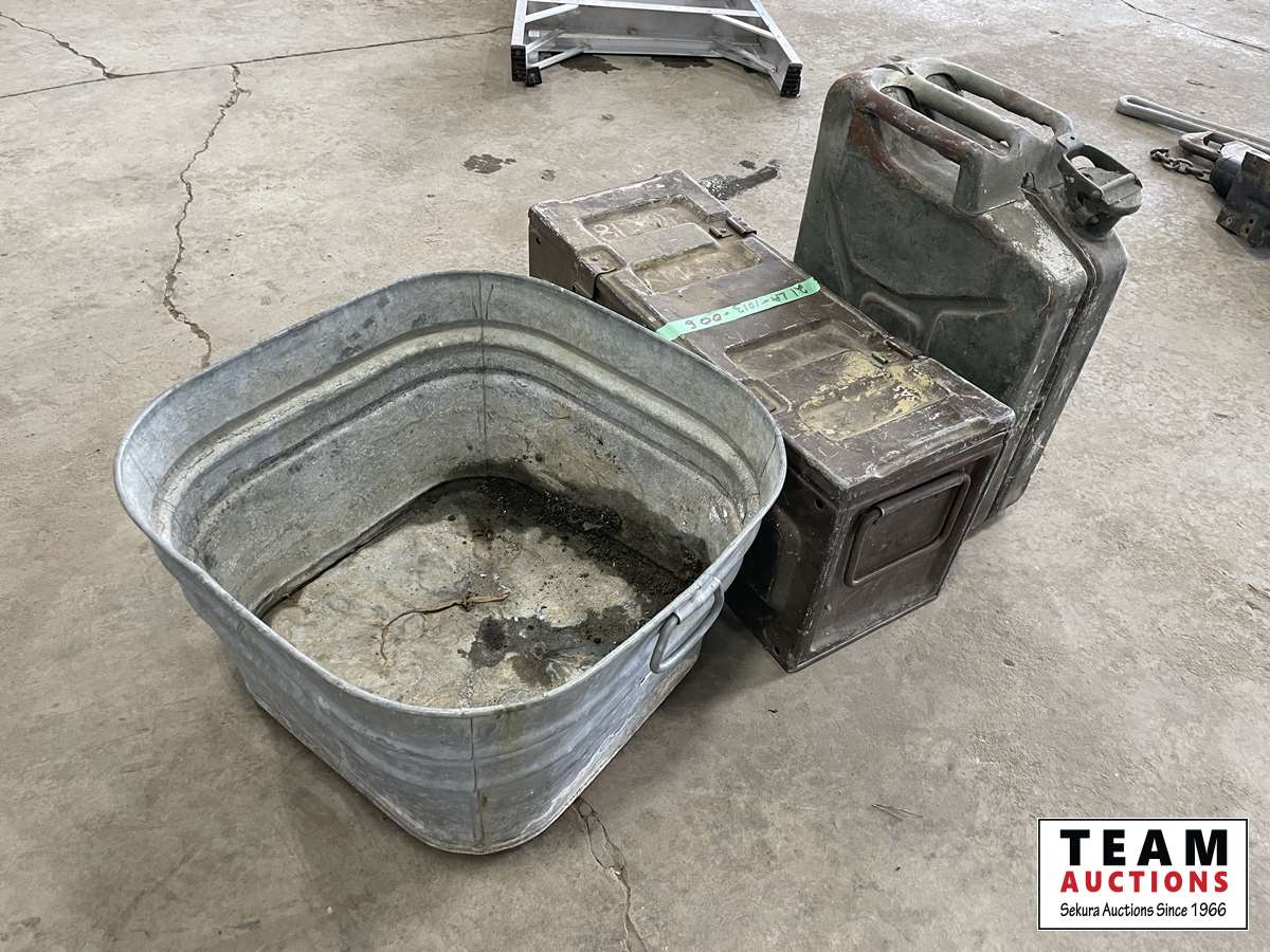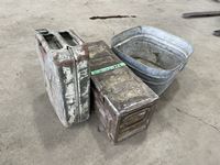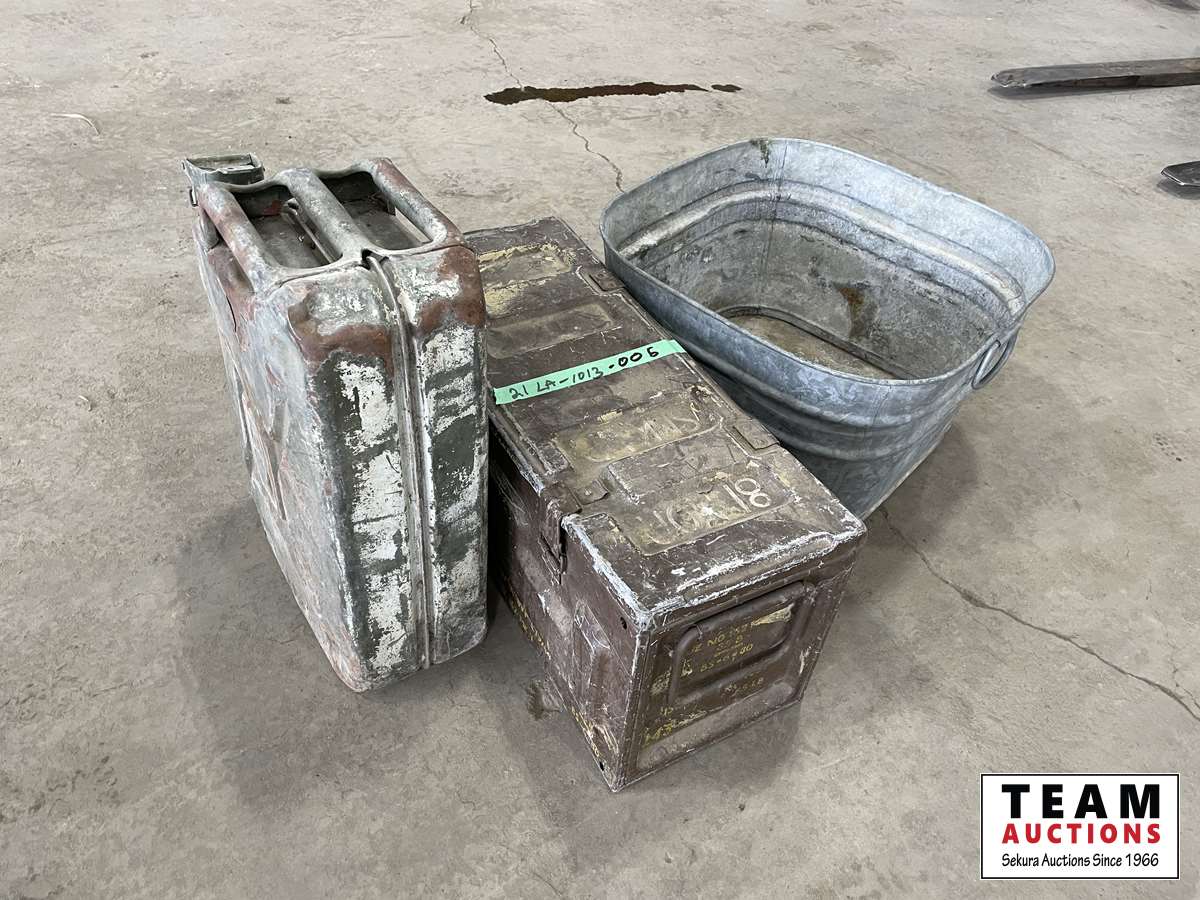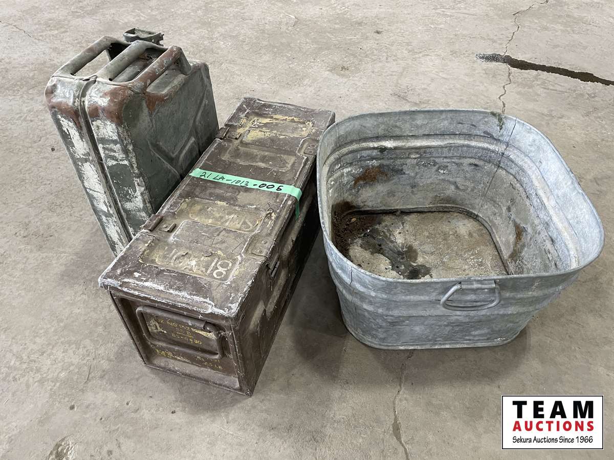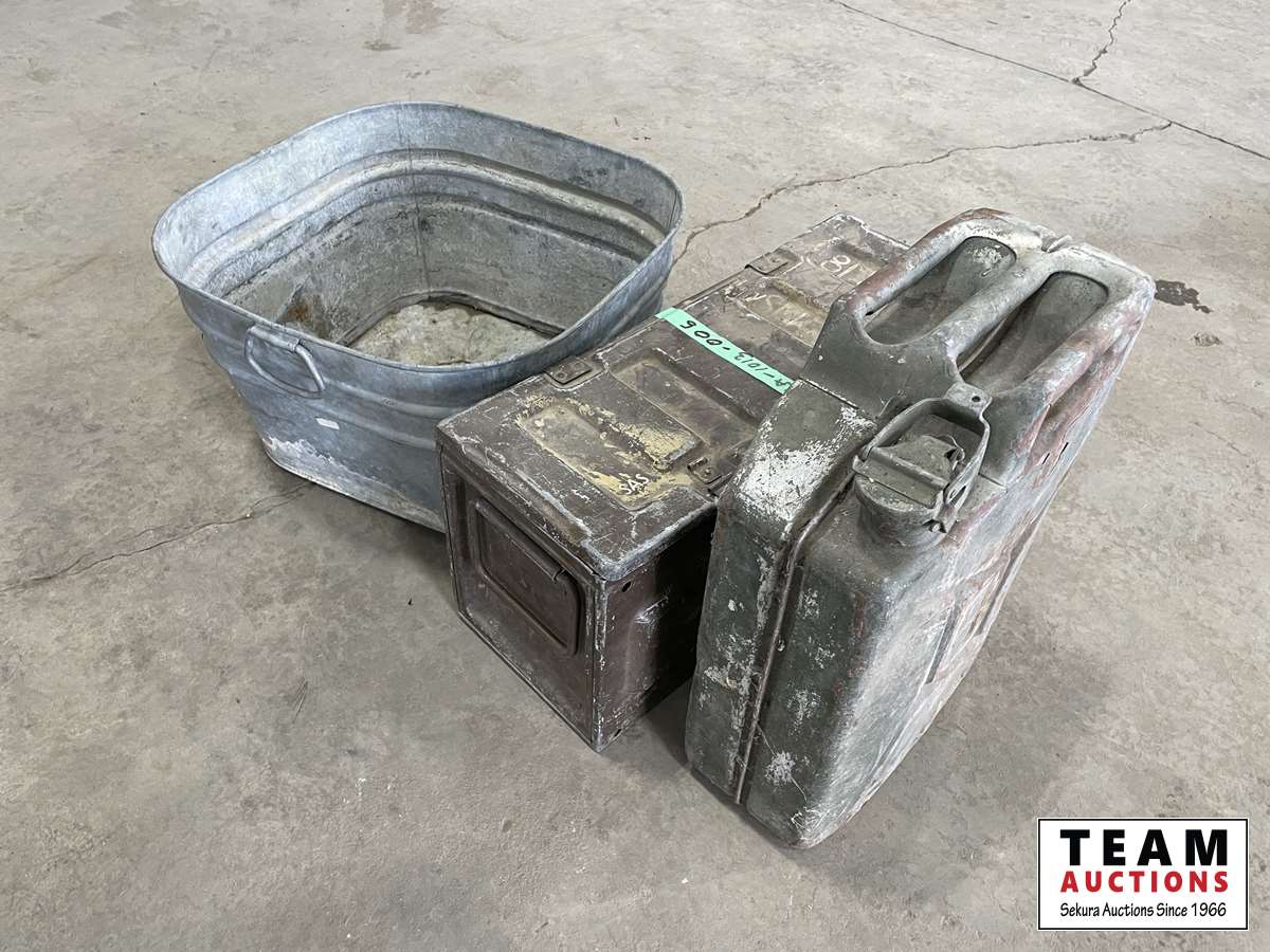 1687 Metal Gas Can, Ammo Box & Metal Tub