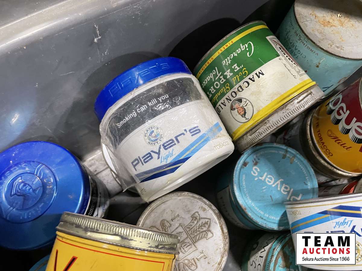 1577 Qty of Tobacco Tins & License Plate