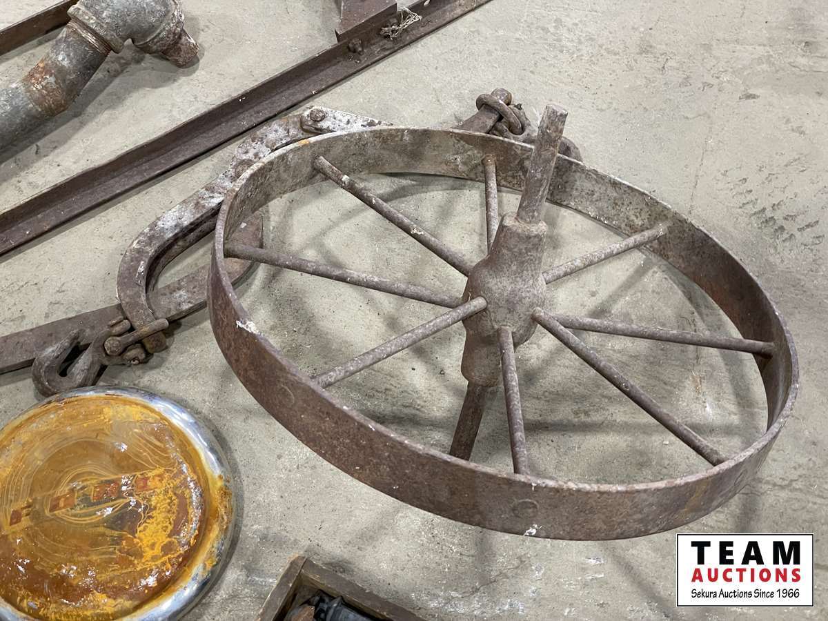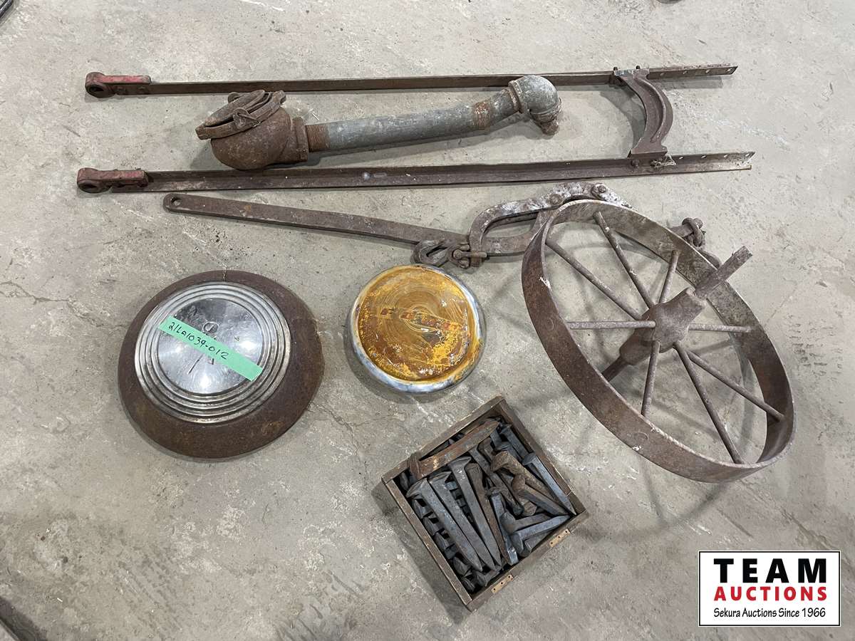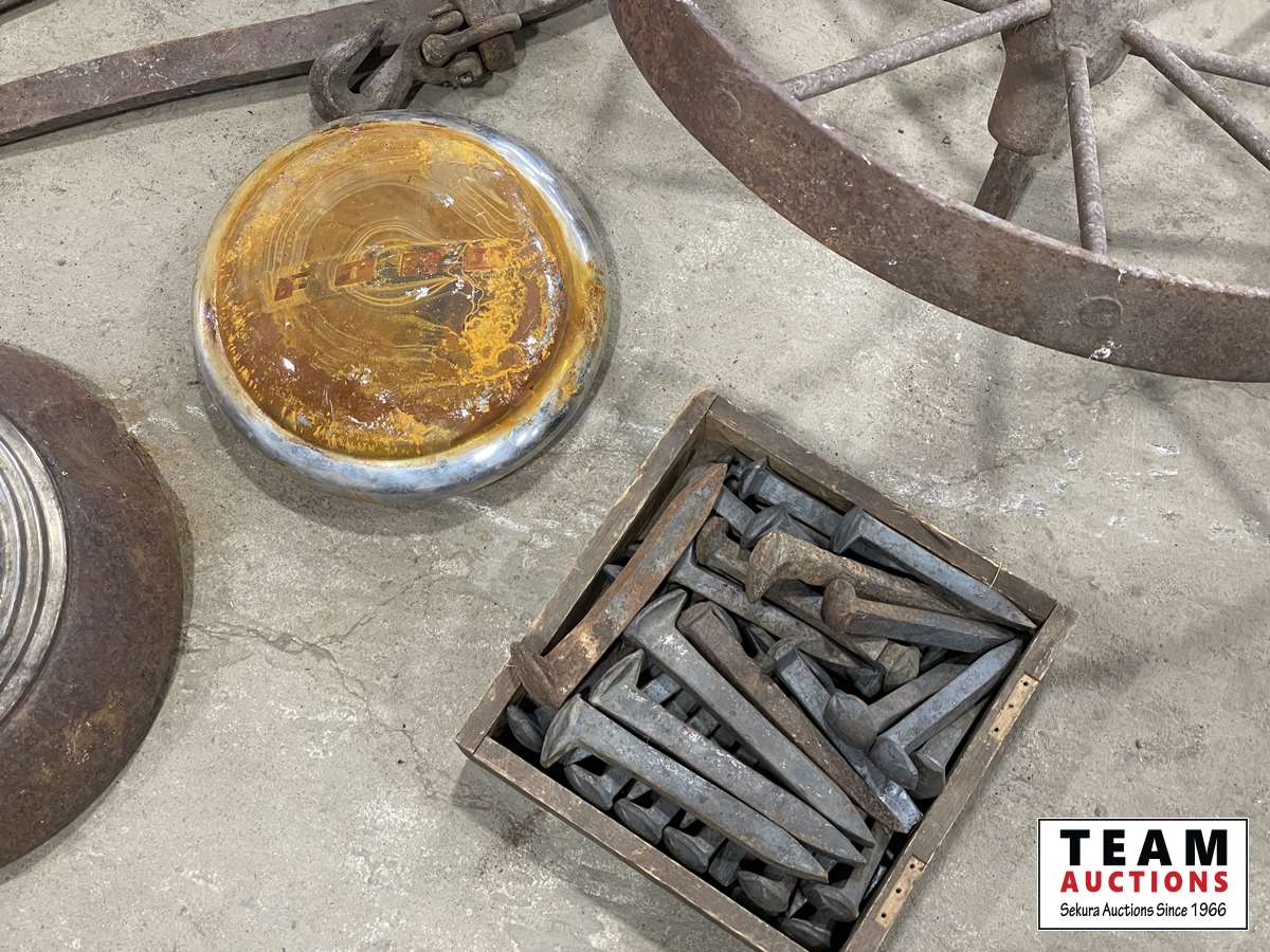 1633 Steel Wheel, Box of Railway Spikes, Light, Etc.