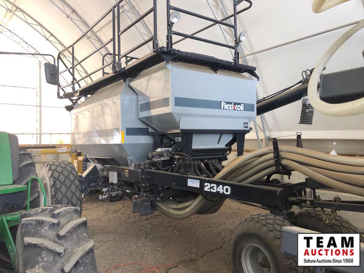 10" spacing with Dutch openers, dual shoot, 550 lb trip shanks, steel packer wheels, Flexicoil 2340 tow behind tank, optional 320 small granular tank, variable dual shoot, night light package, (3) large grain rollers, hydraulic loading auger, Flex in cab control monitor, seed treating kit, 16.5X16.1 frt & 23.1X26 rear tires, tires on whole unit are in good shape