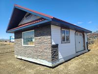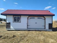 (2) 10'x7' garage doors, c/w everything to finish the project including flooring, insulation, sink, water pressure tank, garage door openers, etc. on 4"x6" treated skids 4' o.c, 1/2" treated plywood on belly of floor, 2"x6" treated floor joists 12" o.c, 2 layers of 3/4" plywood floor glued and screwed, all plywood and no OSB