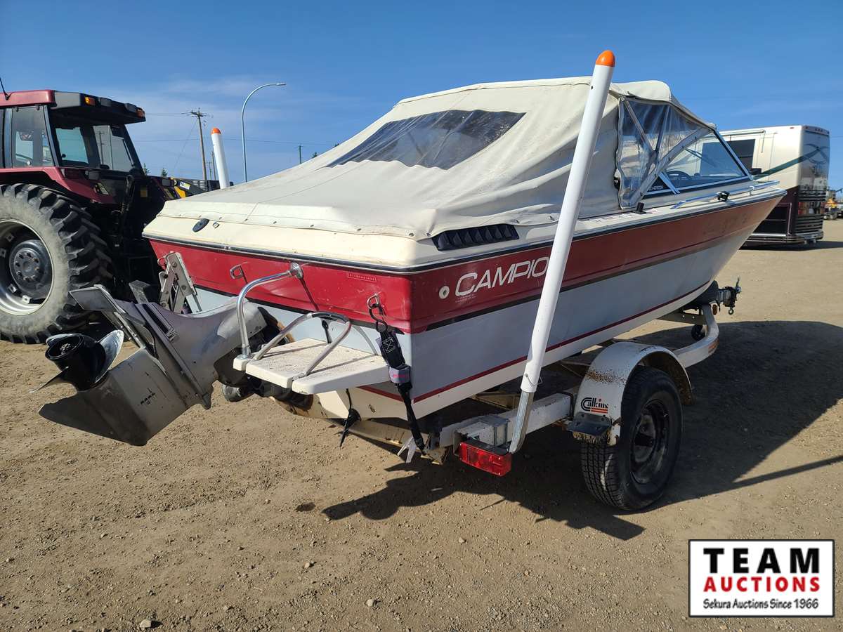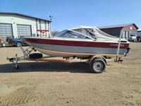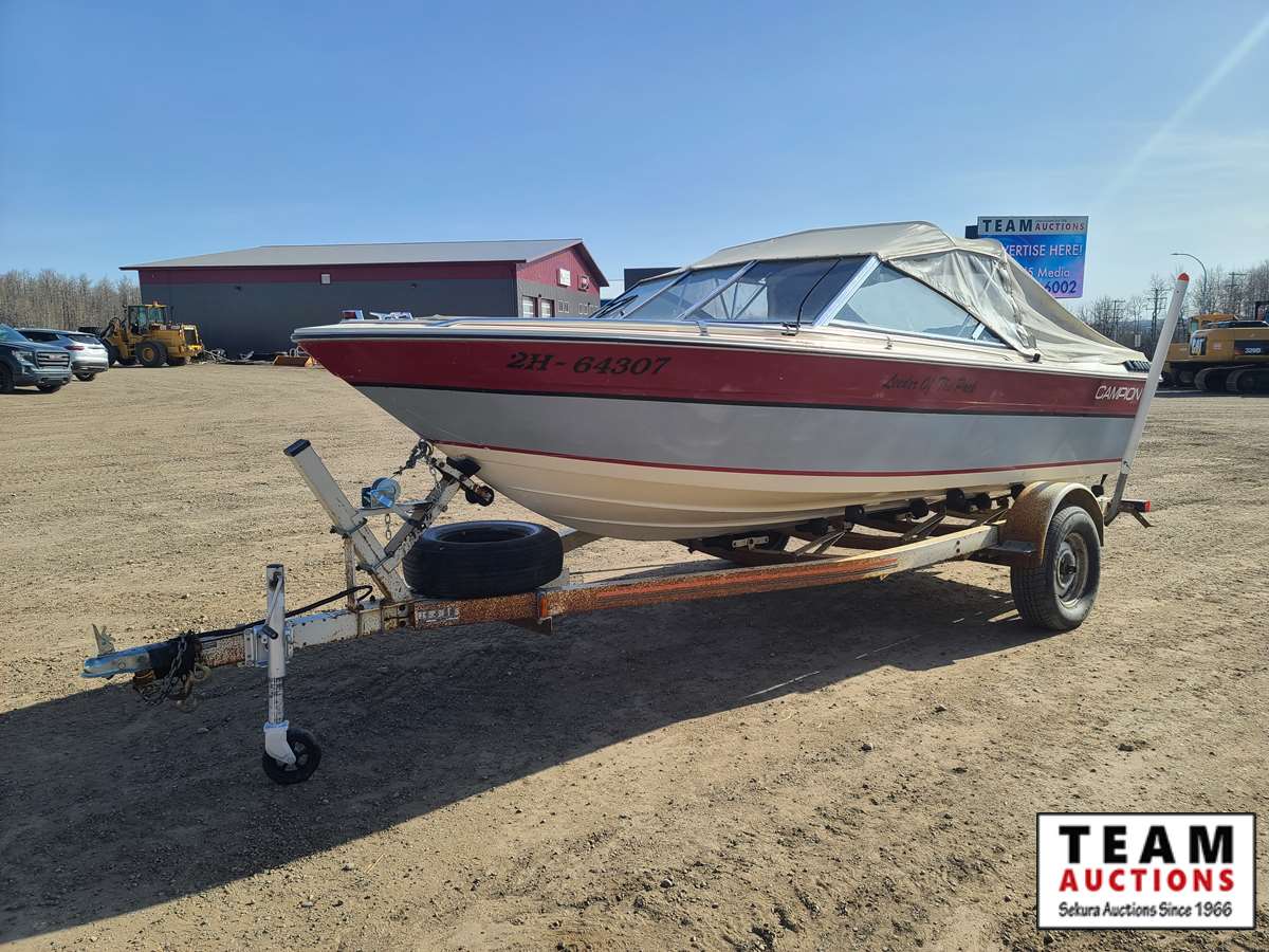 c/w Calkin 21' trailer, 235/70R15 tires, open bow, 687 hrs showing