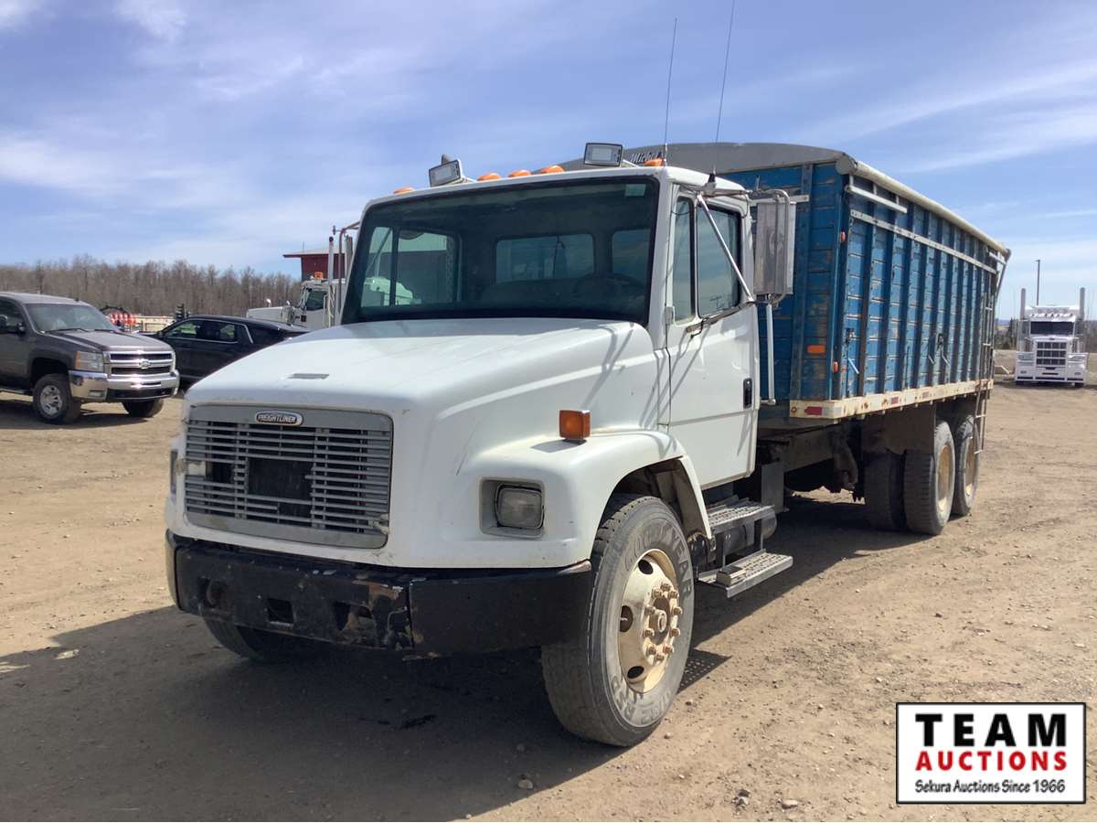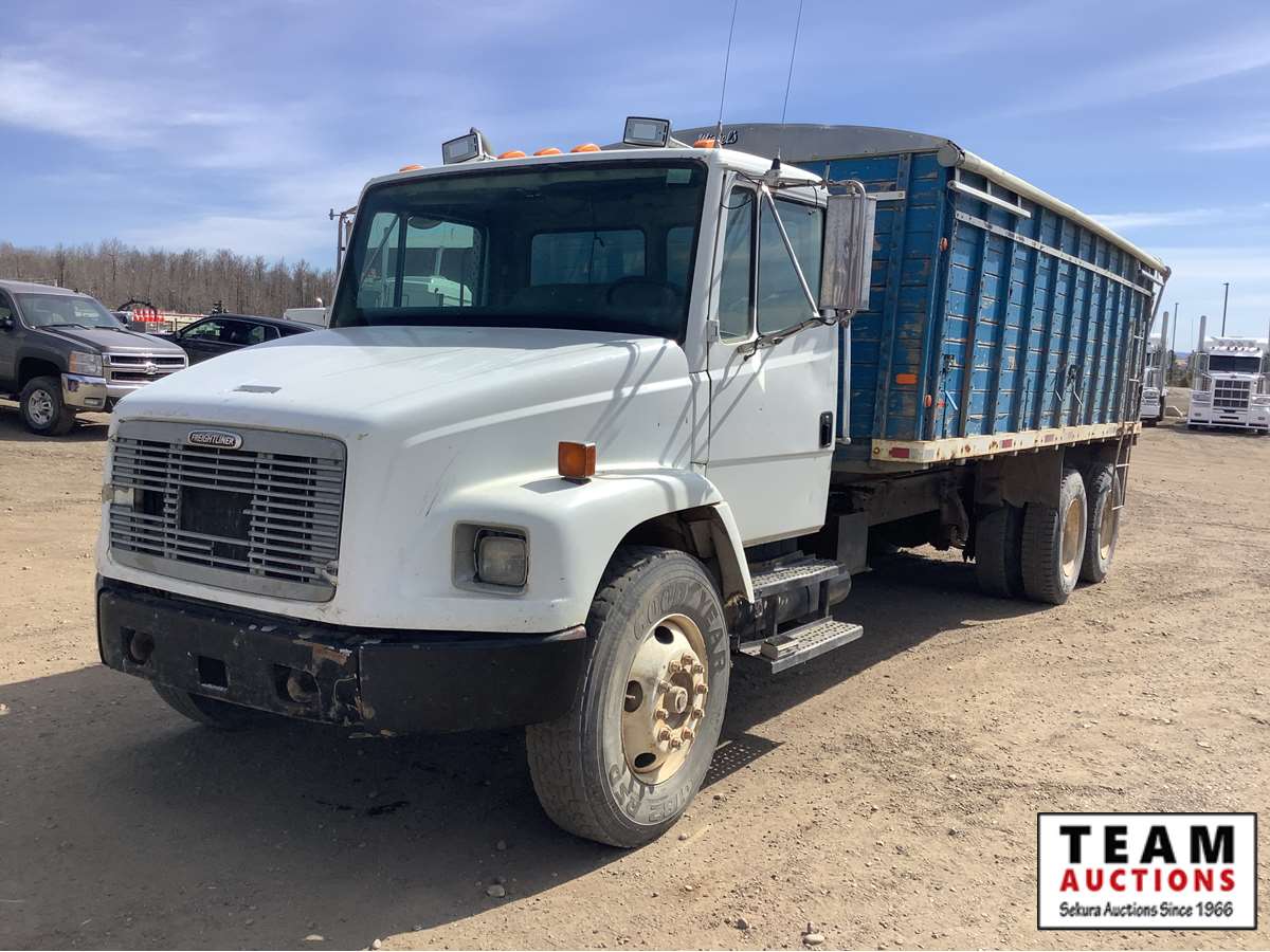 Cummins 6 cylinder diesel engine, 10 speed transmission, air ride suspension, 18' wood box, hoist, tarp, shows 226,329 kms, Alberta registered, don't have copy of registration