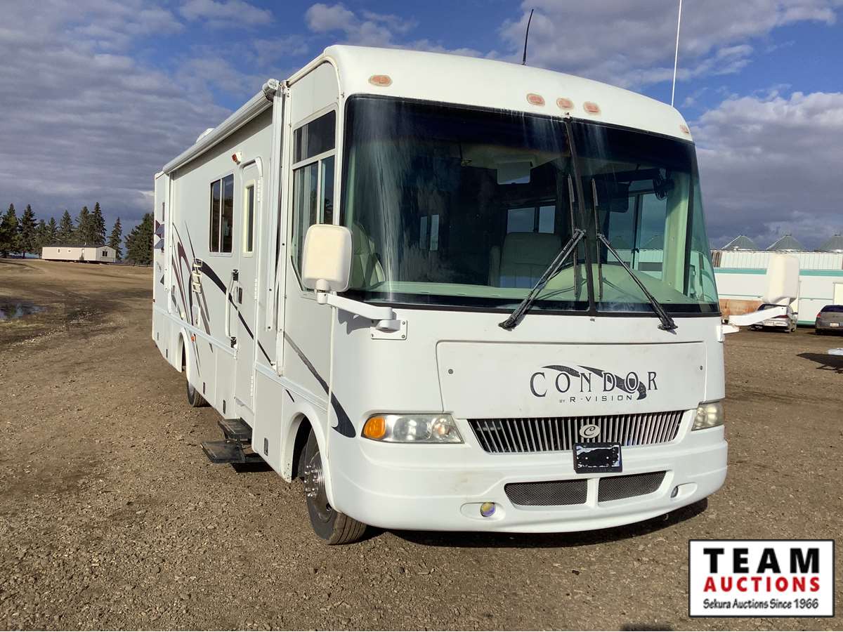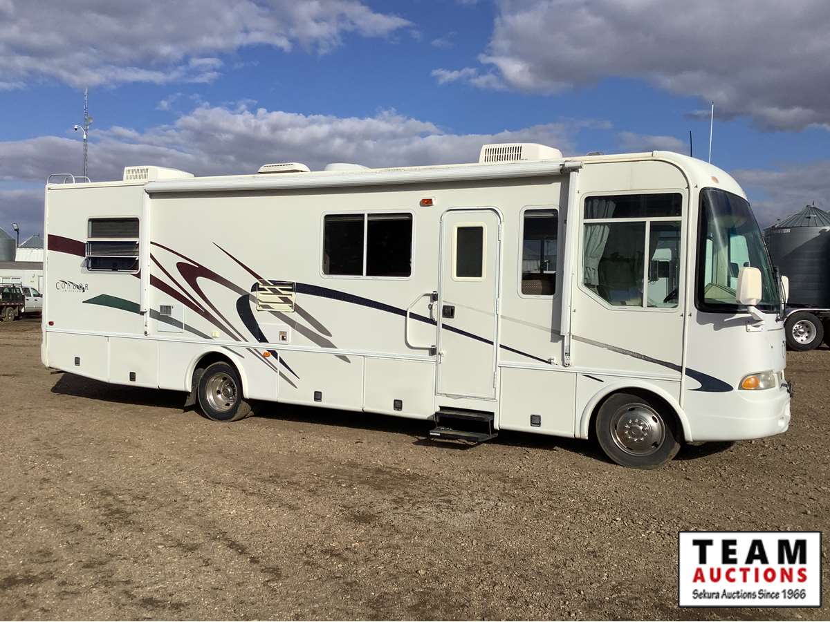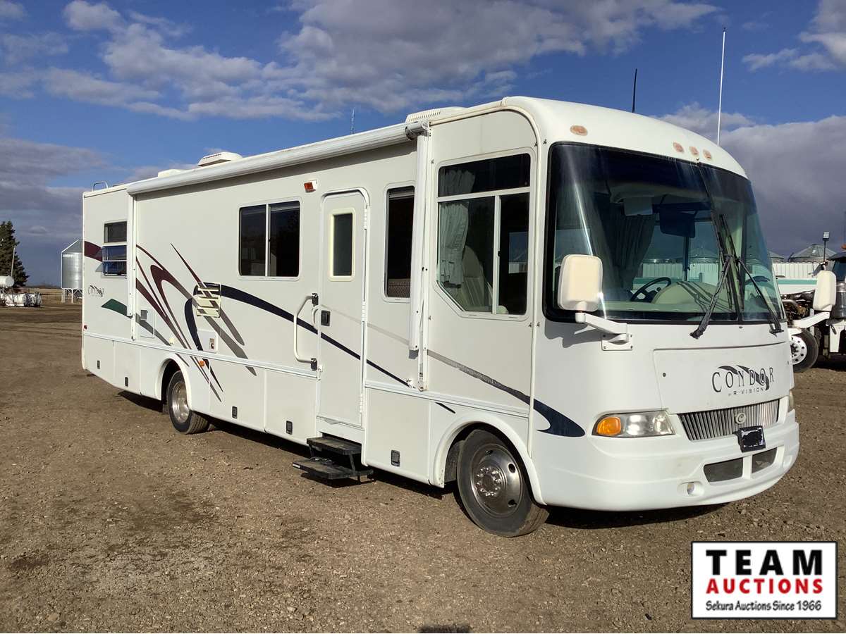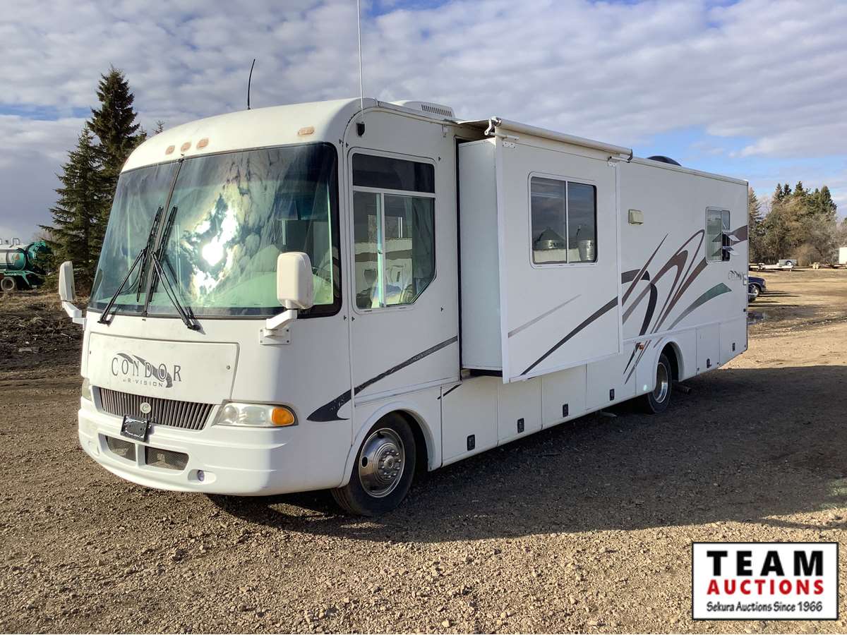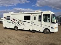 V-8 GMC gas engine, automatic transmission, A/C, rear bedroom, full bathroom with shower, fridge with top freezer, gas range, microwave, built in 5500 watt gas generator, out side electric opening awning, all 19- inch tires, has one slide, is real clean inside, has lots underneath storage has 40189 miles on it. Note this is a out of province unit and was last registered in Saskatchewan. If sold anywhere except Saskatchewan will need a out of province inspection done before being able to register unit. Starts and runs well.