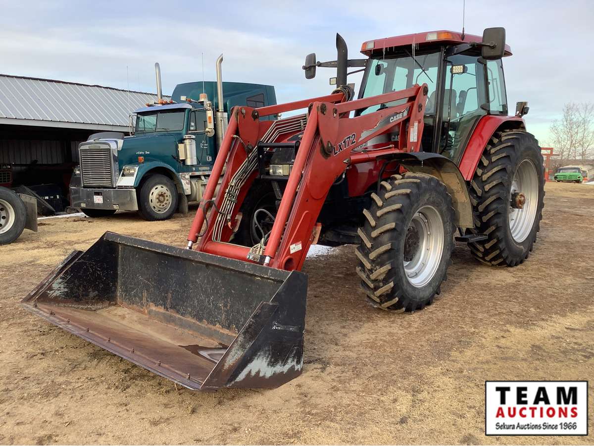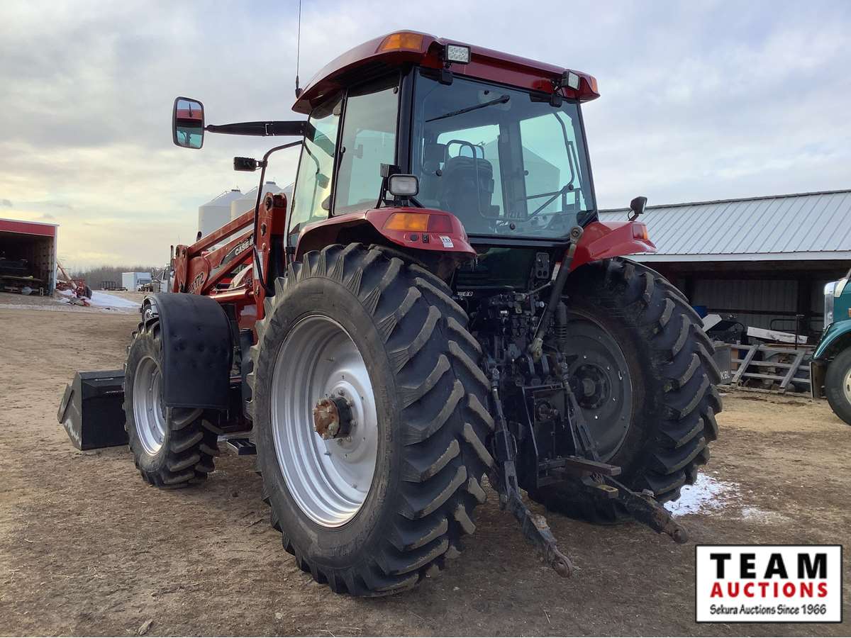 Case IH LX172 loader, quick attach bucket, 3rd valve to bucket for grapple, front grill guard, 6 cylinder 135 pto HP engine, 18 speed partial power shift transmission, left hand reverser, cab, heat, A/C, radio, 480/80R42 radial rear tires in excellent shape, 380/85R30 radial front tires, (4) rear hydraulic outlets, 3pt hitch, 540/1000 pto and we have both shafts, shows 5,073 hours