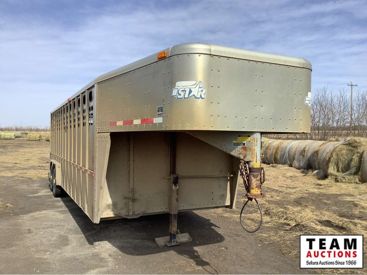 7.5' wide, 7000 lb axles, with real good 235/85R16 tires, swing out rear door with roll up door, (2) inside divider gates and one is a half gate, has optional cross members under the floor, Alberta registered, have copy of registration