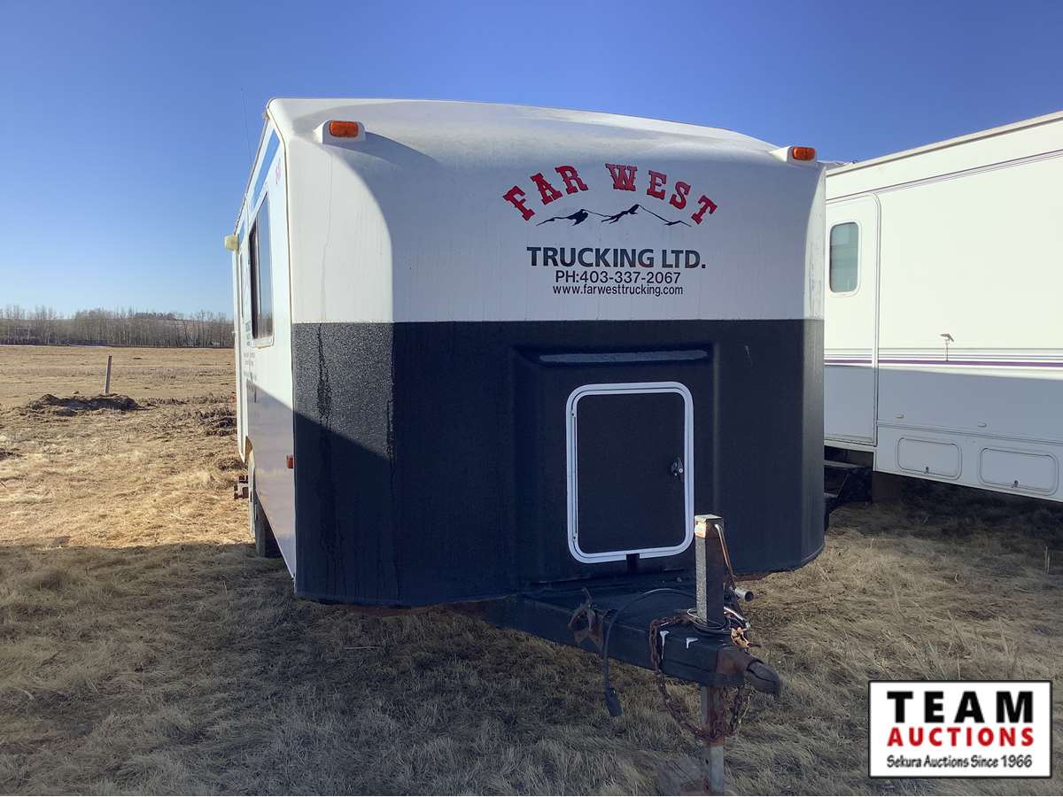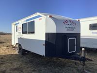 A/C, heat, bathroom, TV, radio, satellite, microwave, fridge, power cord, spray foam insulated floor, 5000 lb axles, 235/R16 tires on steel rims, Alberta registered