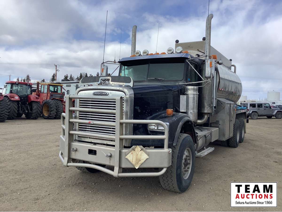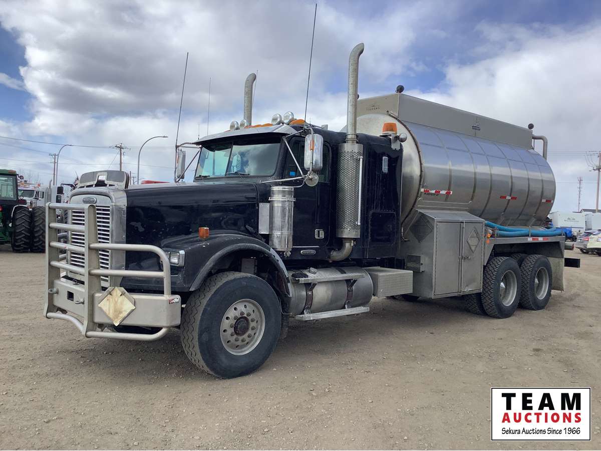 Detroit 515 HP engine, 18 speed transmission, 20,000 lb front axle with 425/65R22.5 tires and 46,000 lb rears with lockers, 11R24.5 tires on aluminum rims, air ride suspension, flat top integral sleeper with real good interior, 2006 Tremcar DOT-407SS stainless steel tank, meter, heated insulated compartment, hydraulic drive pump tank has new total inspection just done Apr 23, 2021 rear pup hitch unit set up since new, rear pup hitch, 616,805 kms, Alberta registered, have copy of registration, current CVIP on truck