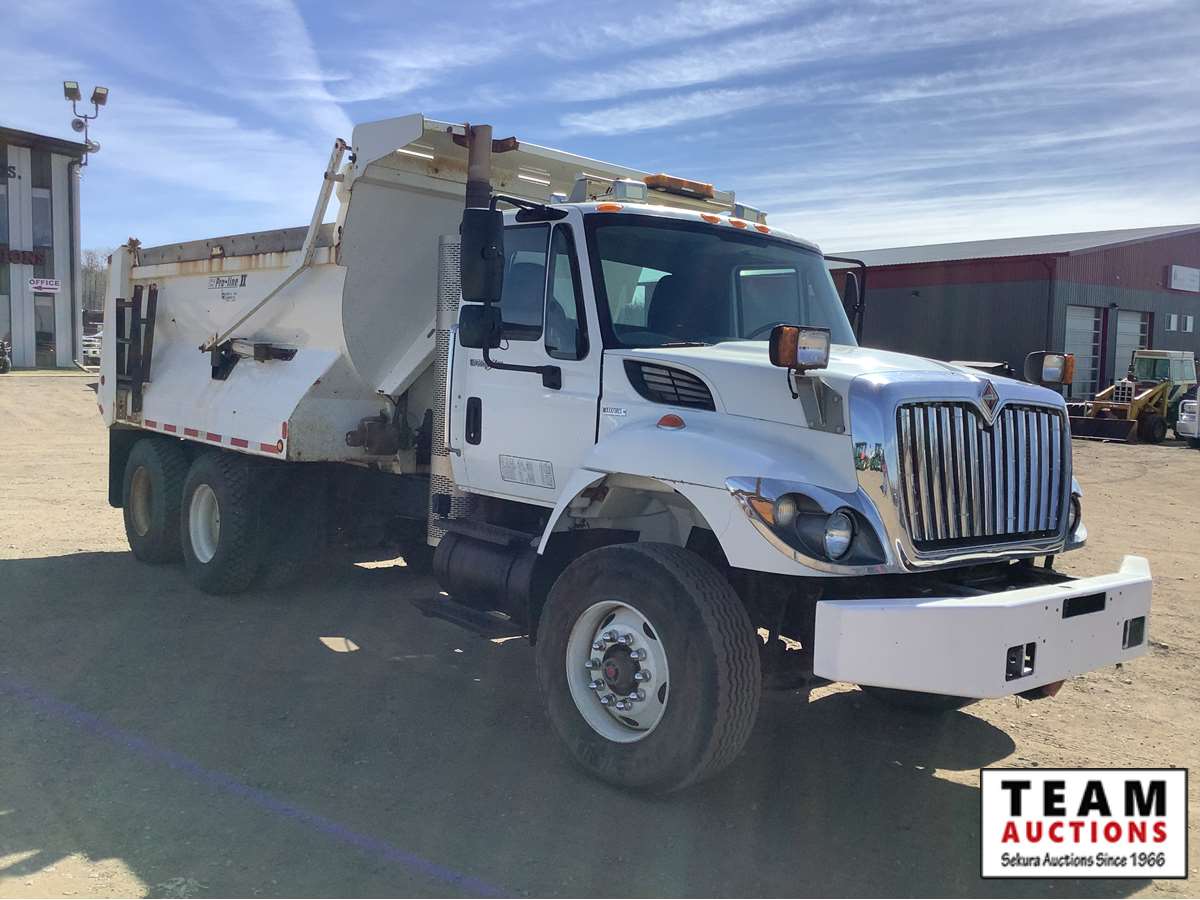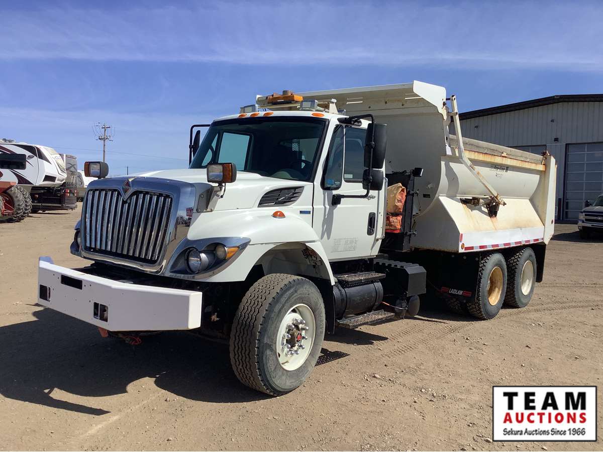 International 6 Cylinder diesel engine, Allison auto transmission, Henderson Torque flex rear suspension, double frame, front mount hydraulic pump, Viking-Cives unibody gravel box, air operated flip tarp, rear pintle hitch, only 171,125 miles, new Alberta CVIP, Alberta registered, have copy of registration on hand 385/65R22.5 frt & 11R22.5 rear tires,