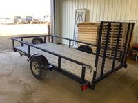 3000 lb axle, fold down sides, rear folding ramp, 215/75D14 tires, trailer only has 250 kms on it, Alberta registered