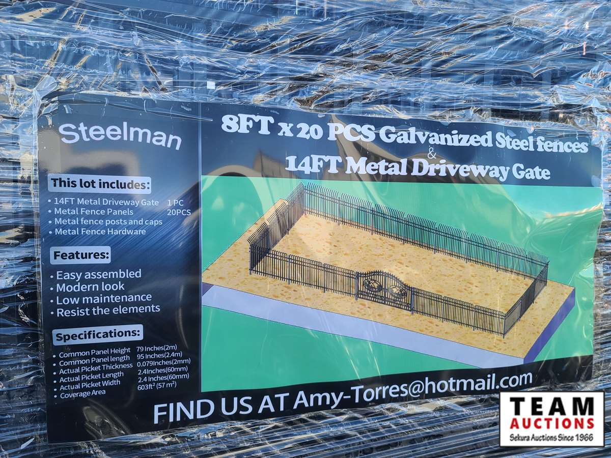 c/w 8' x 20pcs galvanized steel fence sections and 14' metal gate