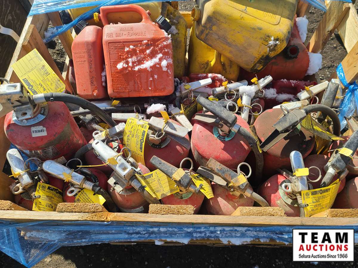 723 Pallet of Misc Fire Extinguishers & Jerry Cans