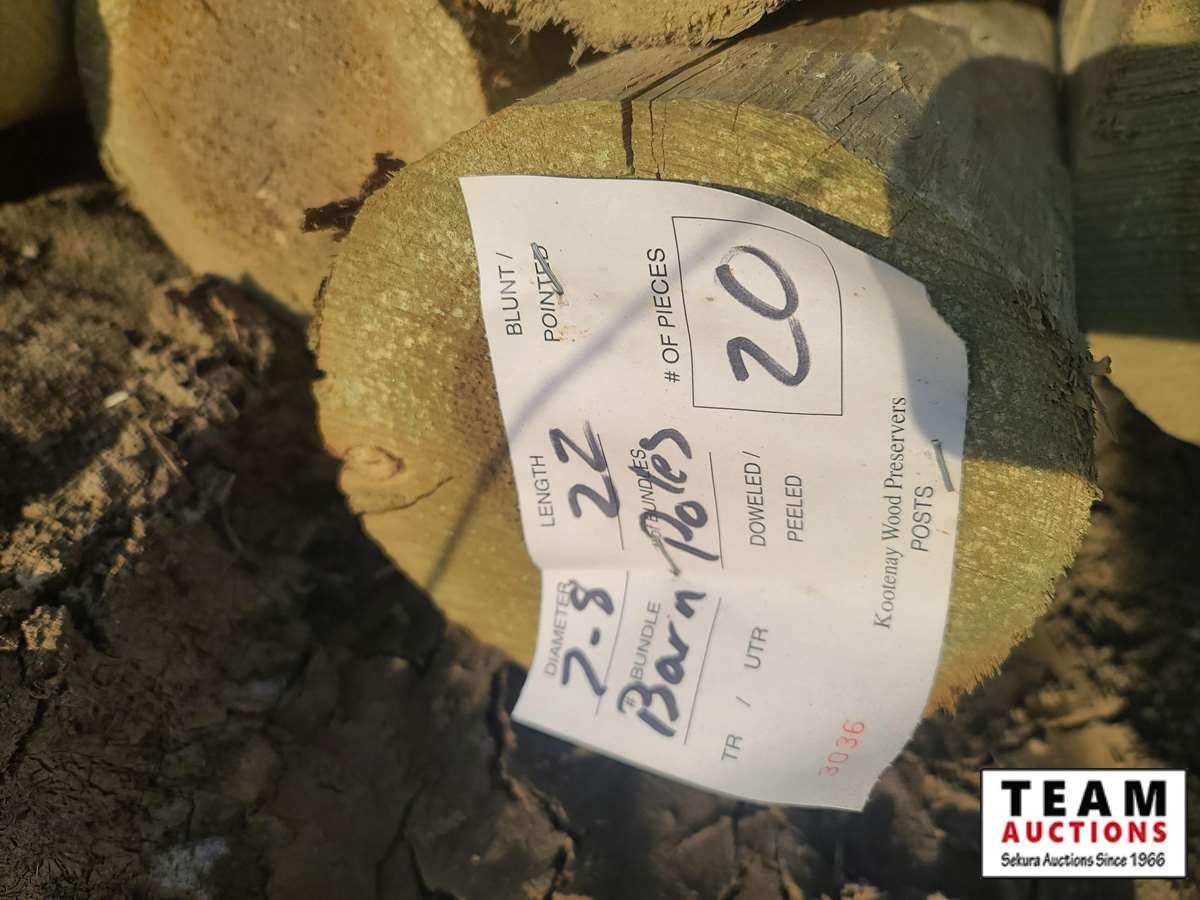 61 Qty of (20) 7" to 8" x 22' Treated Barn Poles